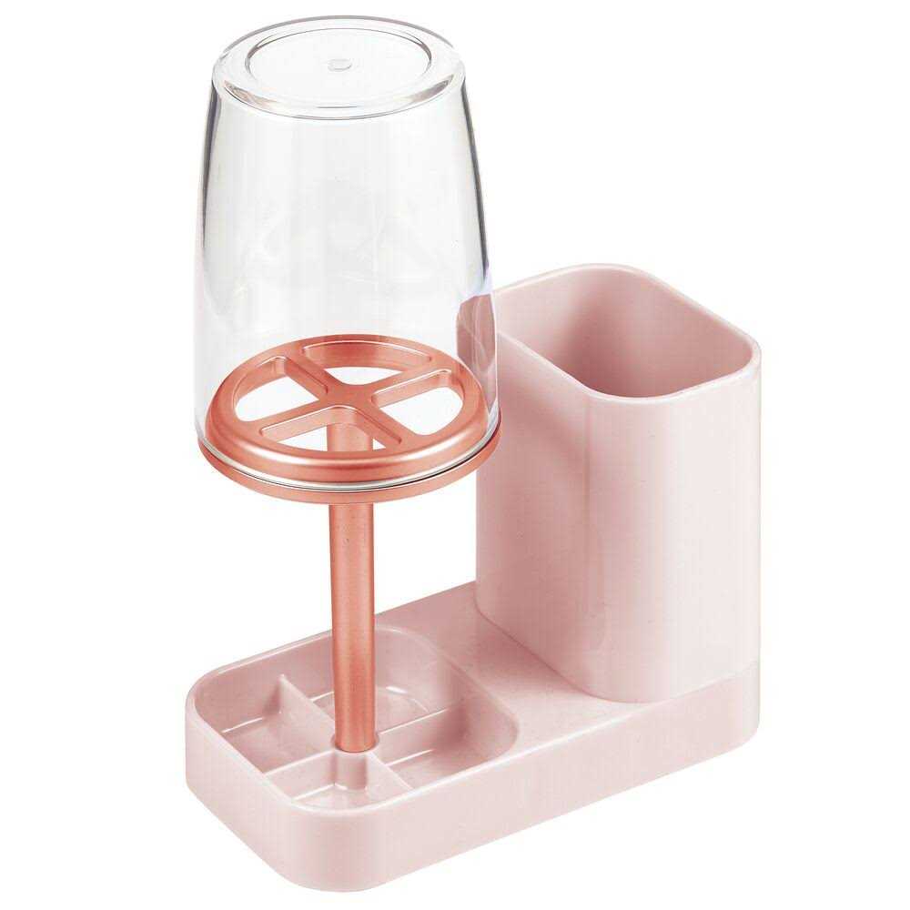 mDesign Toothpaste & Toothbrush Holder with Rinsing Cup