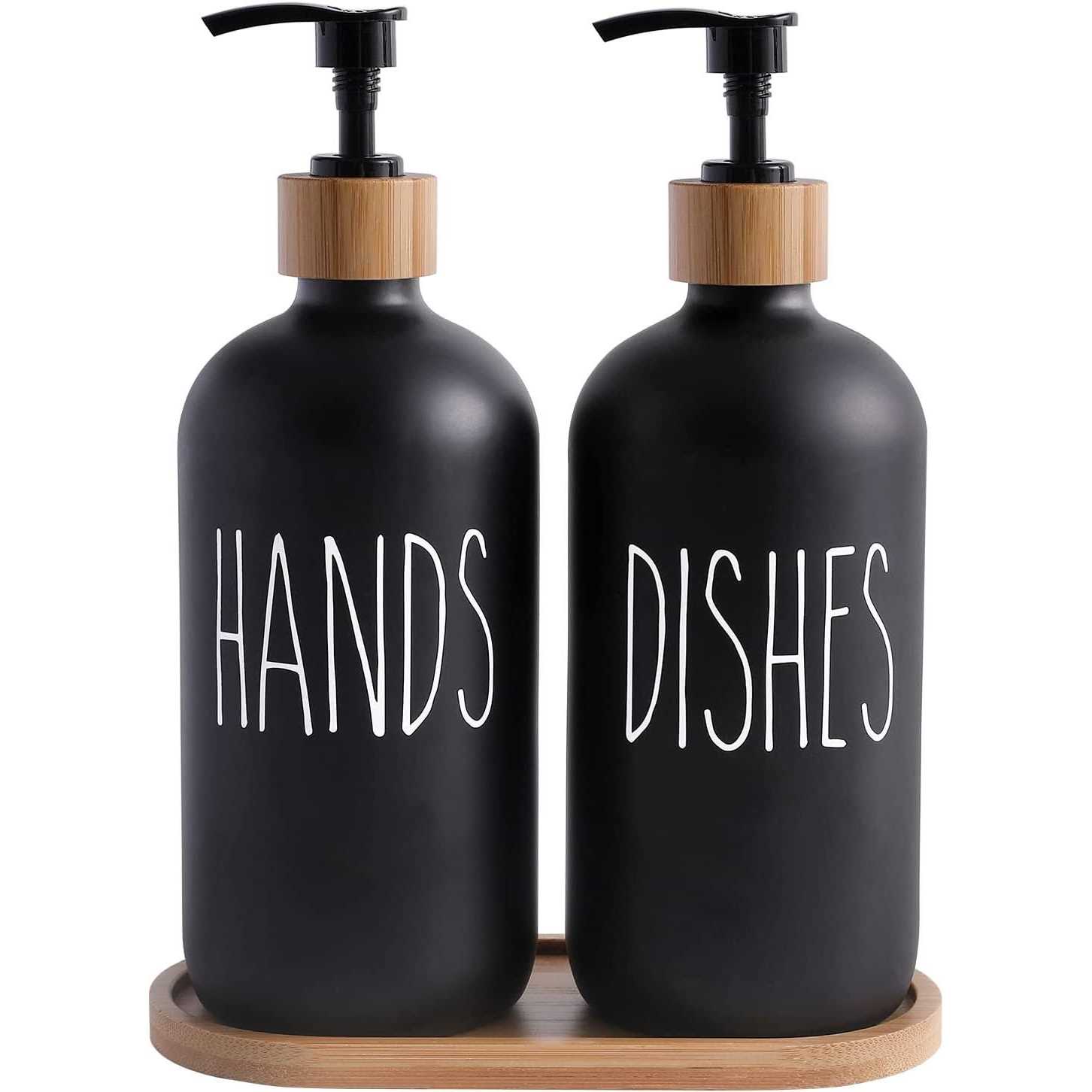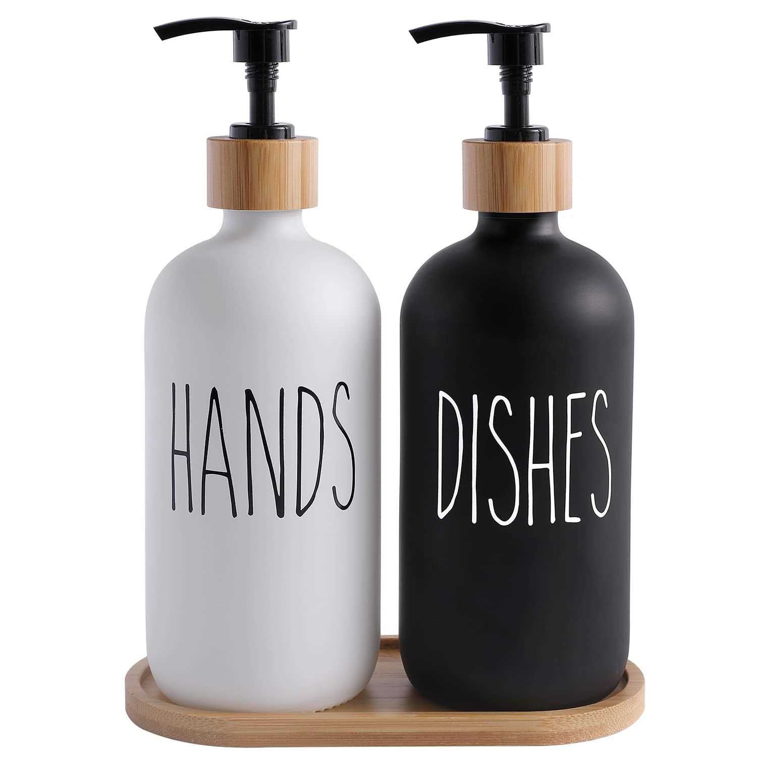 MOMEEMO Glass Soap Dispenser Set, Contains Hand Soap and Dish Soap Dispenser.Suitable