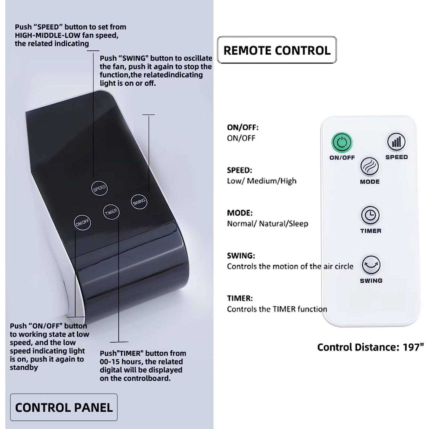Healsmart 38 inch Bladeless Fan 3 Speeds & 15 Hours Timer Tower Fan