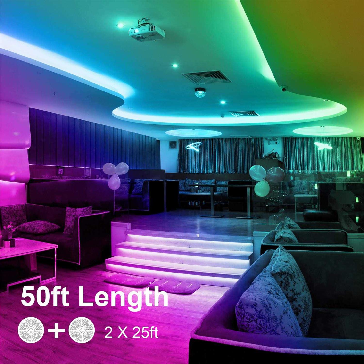 Charkee Led Lights For Bedroom 50 ft Color Changing Led Strip Lights with 44-Key Remote