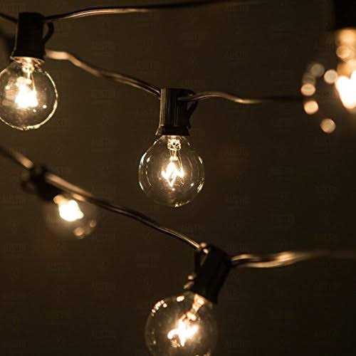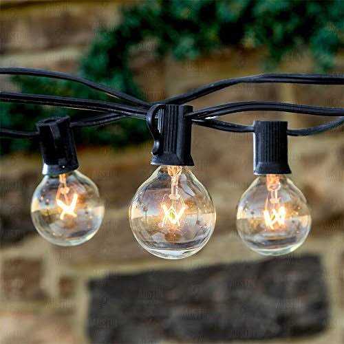 ILLUMINATING – Create an exhilarating, inspiring and intimate atmosphere in nearly any location. Allow your creativity and imagination to envision these high quality lights brighten up your favorite spaces. Use these G40 globe string lights to create a timeless retro vintage look or illuminate your clean modern aesthetic. These festoon globe lights work well in in many spaces inside and out. DESIGN – 25 lights, with 1 feet between sockets. Crafted with weatherproof 20 AWG copper wire strung through 25 light sockets, set 1 foot apart. Ideal for long-length or wide-area applications. Thoughtfully spaced 6 inches lead and tail wire allow seamless end-to-end connections while maintaining a consistent 12 inch light spacing. Connect up to 4 strings to achieve 100ft of illuminating string lights for a variety of spaces. DURABLE – UL Listed and Certified. Crafted from durable commercial grade high-density PVC and heavy-duty 20 AWG copper wires. Features PVC sockets with integrated hanging clips. Designed to be used indoor and outdoor in nearly any weather condition. Tough, durable and beautiful! VERSATILE – Great string lights for many applications, including: outdoor party or wedding reception, patio, deck, yard, restaurants, porch, garden, store windows, gazebos, pergola, café, bistro, al fresco dinning, market, sidewalk café, Use for temporary a decorative flourish or permanently install for year round enjoyment. BULBS INCLUDED – Set contains 25 G40 5 watt clear light bulbs + 2 replacement bulbs. Austin Light Co. provides you a complete set so you can start enjoying the string lights right away!