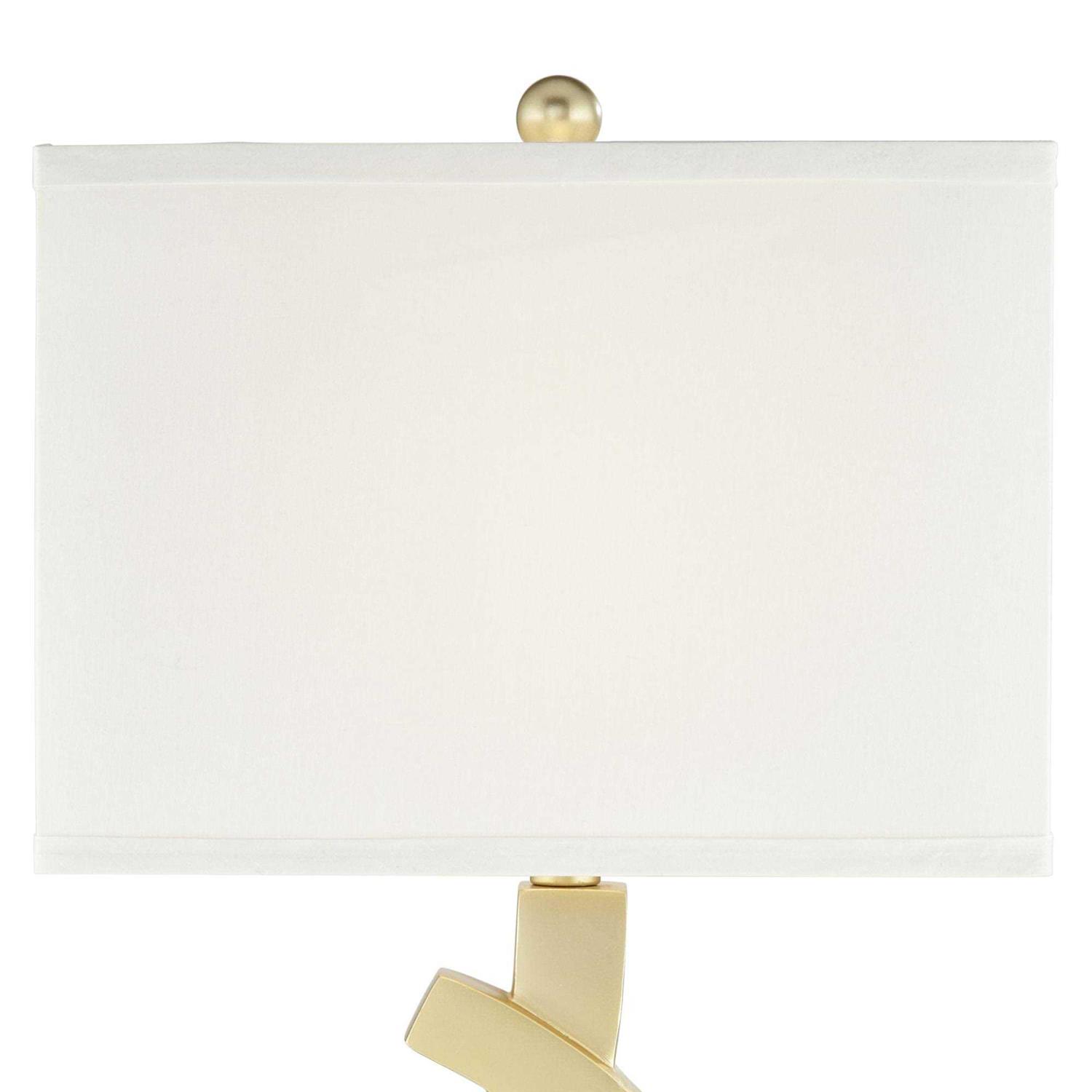 360 Lighting Simone Modern Table Lamps 28″ Tall Set of 2 with USB Charging Port Sculptural Gold Metal White Rectangular Shade Decor Living Room