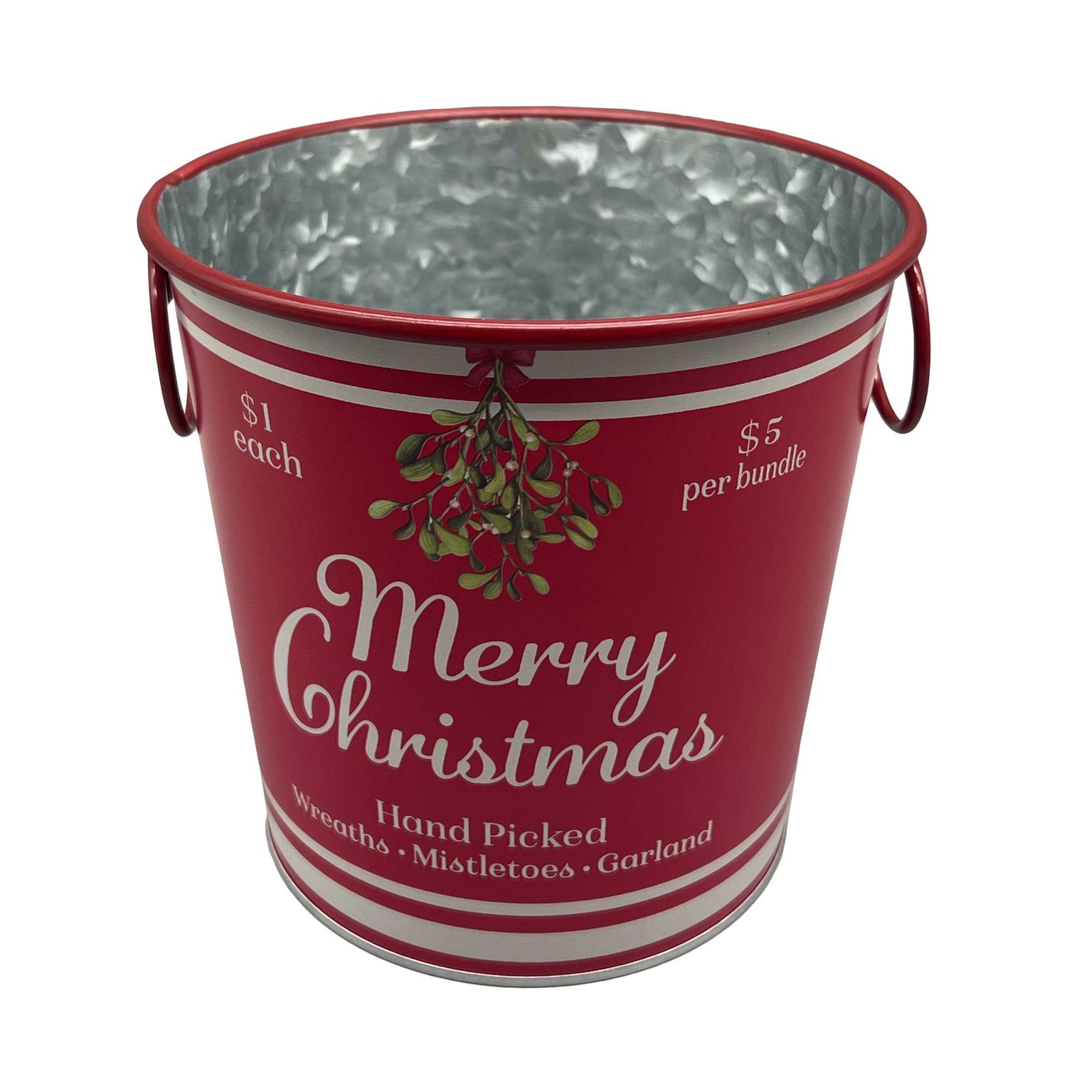 7.5 Merry Christmas Metal Decorative Bucket by Ashland