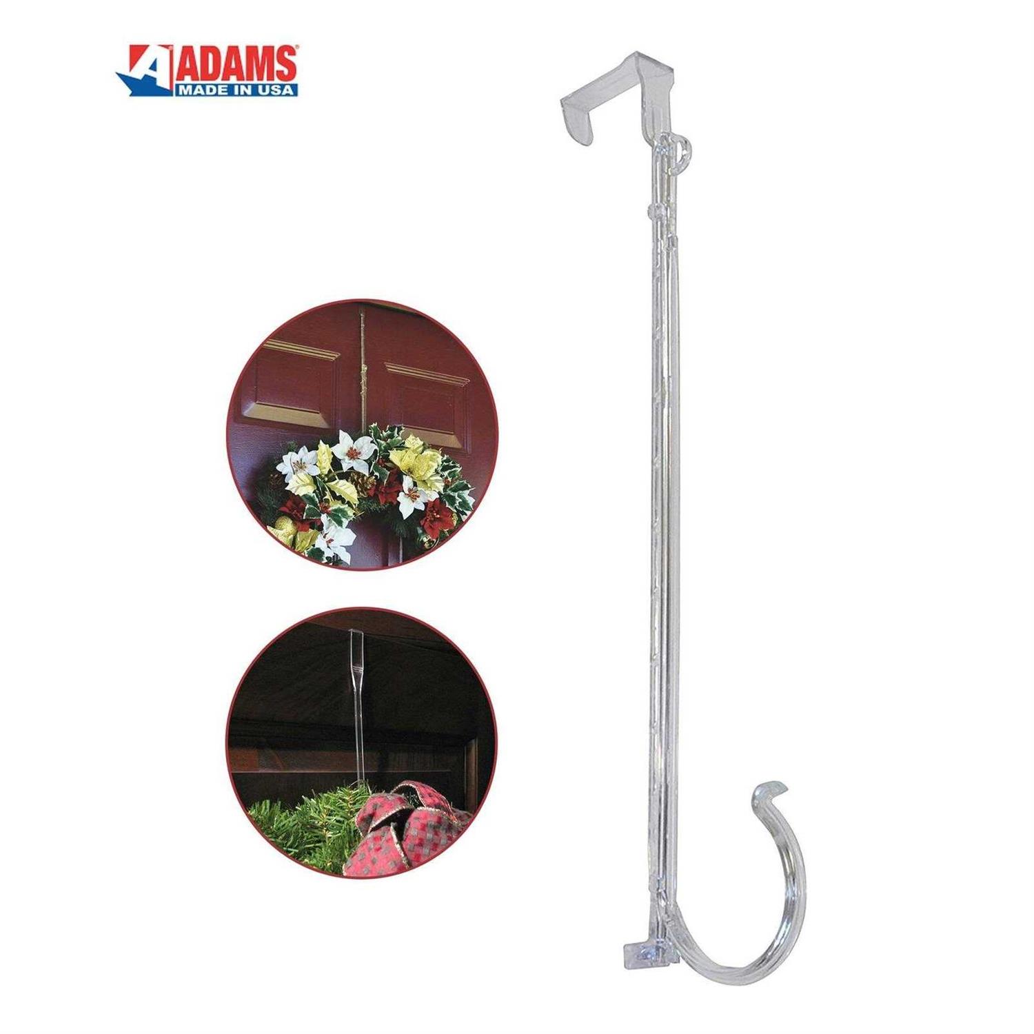Adams adjustable wreath hook is designed for safety and versatility. The easy grip loop slides smoothly and locks in securely, adjusting from 14 inch to 24 inch. The ultra-thin top fits all standard door frames without damage, while the soft gripper prevents scratching on the front of the door. Also to prevent damage, the extra large hook holds wreaths without wire or string.