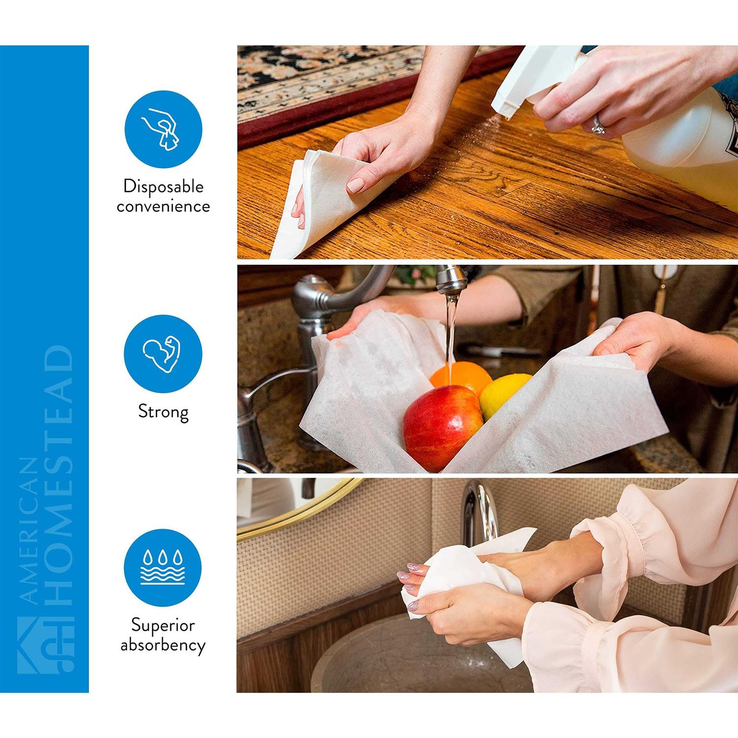 PREMIUM SOFTNESS & COMFORT – Thicker and softer than standard paper towels, these are essential for providing guests high-end comfort and luxury. DISPOSABLE CONVENIENCE – Though these white hand towels look and feels like real linen, they’re disposable and affordable which makes them cost effective. SUPERIOR ABSORBENCY – Just like a good bathroom hand towel, these disposable cloth napkins provide greater absorbency and won’t fall apart. Perfect drying size as each towel folds out, giving you and/or guests ample drying space after washing your hands or face. IDEAL FOR HOME, WORK OR EVENTS – Use American Homestead Linen-Feel Guest Towels in a personal bathroom, corporate restrooms or for weddings and events.