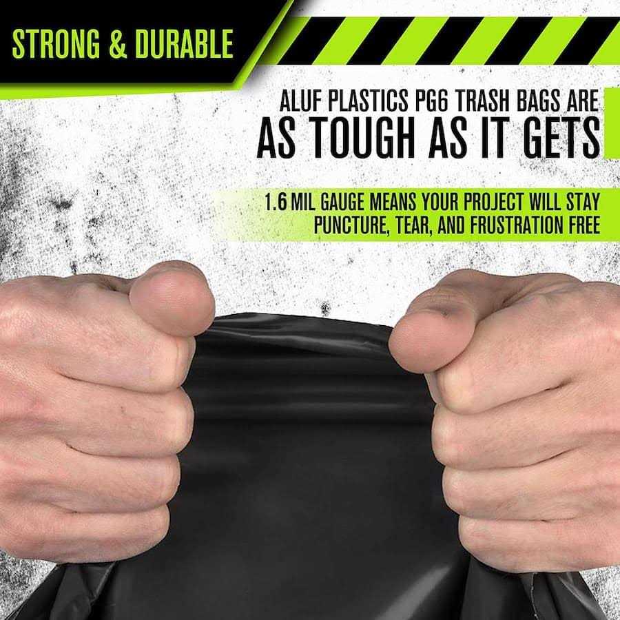 Aluf Plastics 50 in. x 58 in. 65 gal. Black Garbage Bags (Pack of 50) 1.6 Mil for Contractor Outdoor and Storage