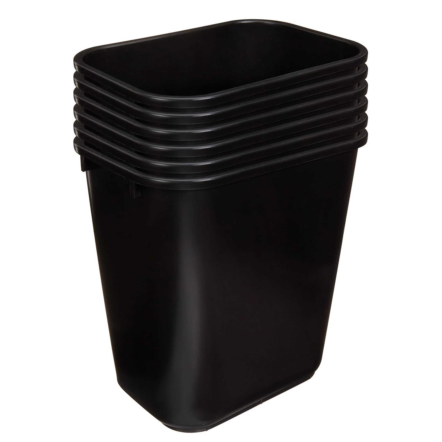 AmazonCommercial 7 Gallon Rectangular Commercial Office Wastebasket, 6 Pack, Black