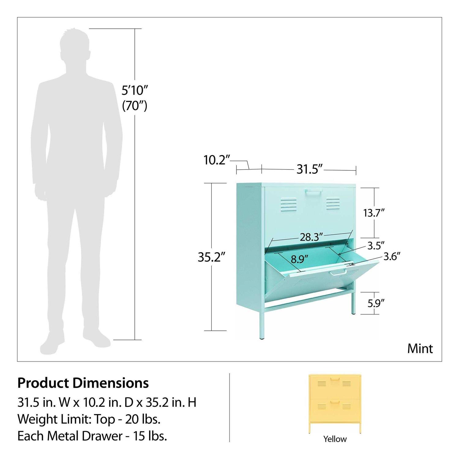 Novogratz Cache 2 Door Locker Style Metal Shoe Storage Cabinet, Mint
