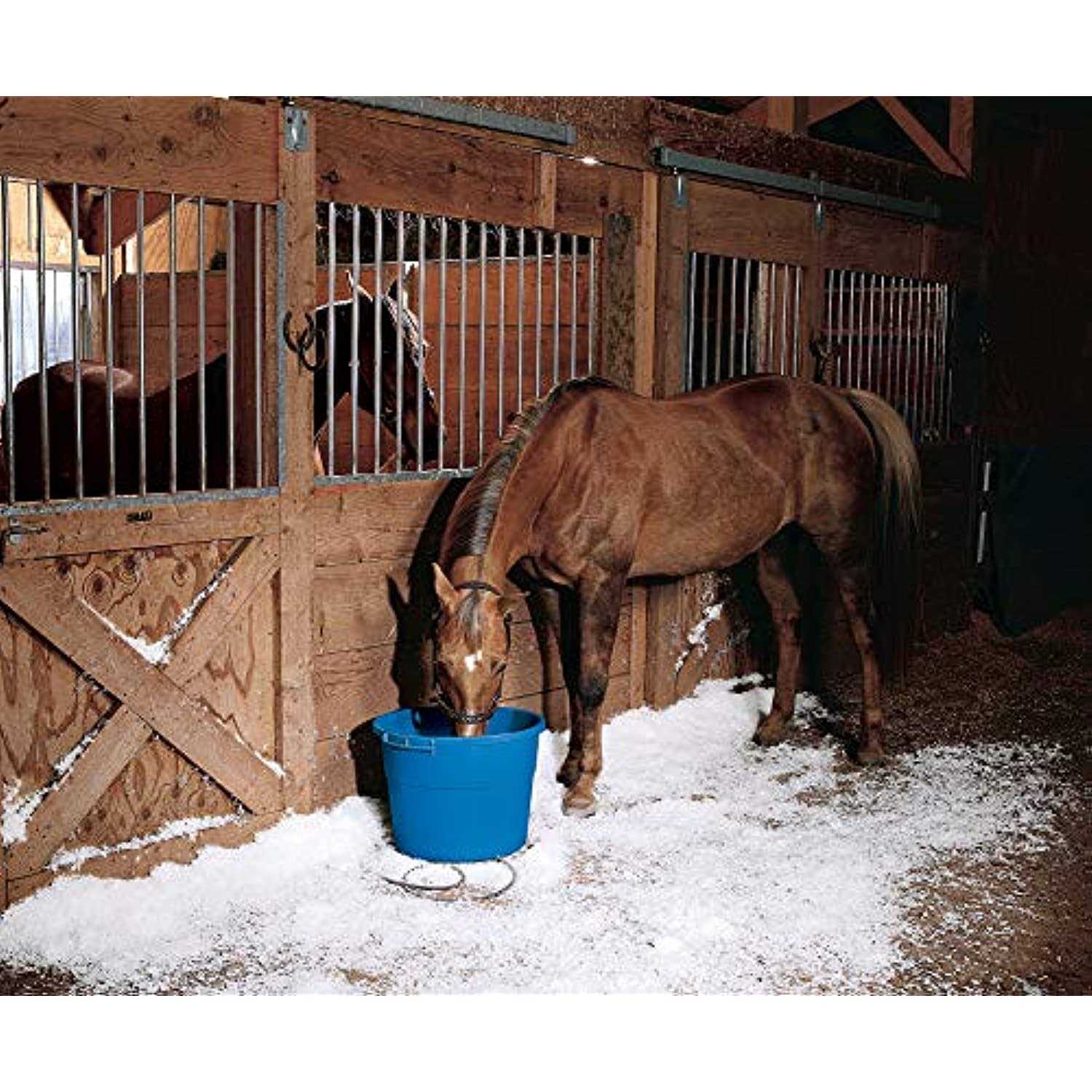 Large 16 gallon capacity with sturdy built-in handles Durable plastic construction resists cracking down to -20 degrees F Thermostatically controlled with over-temperature protection 6′ anti-chew grounded cord 16HB Designed to accommodate multiple animals, this 16-gallon heated bucket is constructed of high-quality, resilient plastic to resist cracking in even subzero temperatures. Features strong and sturdy molded handles. Thermostatically controlled with over-temperature protection ensures that it will keep water ice-free all winter. Great for horses, cattle, calves, sheep and dogs. For added safety, the 6-foot cord with anti-chew protector exits from the back of the bucket. 260 Watts, 120 Volts, 60 Hz. 6′ anti-chew cord.