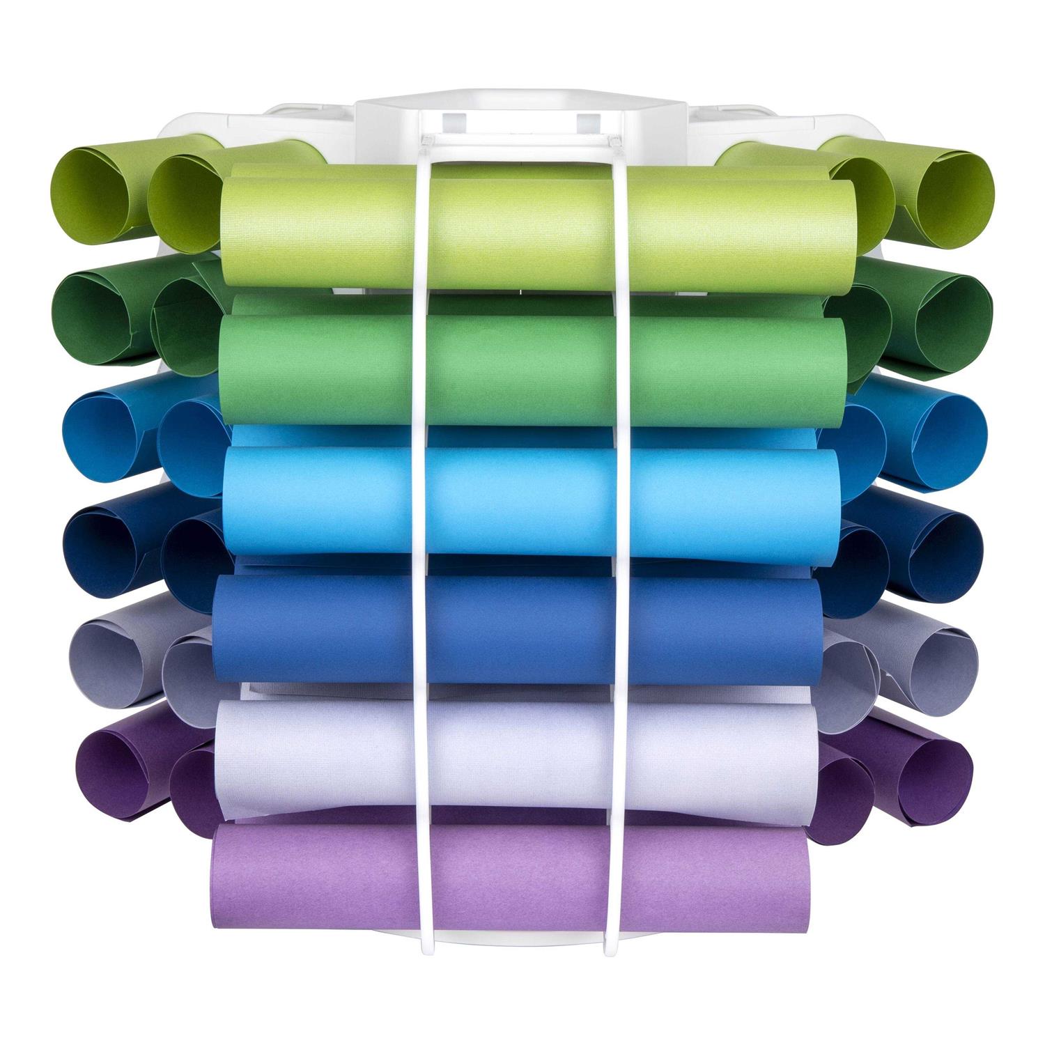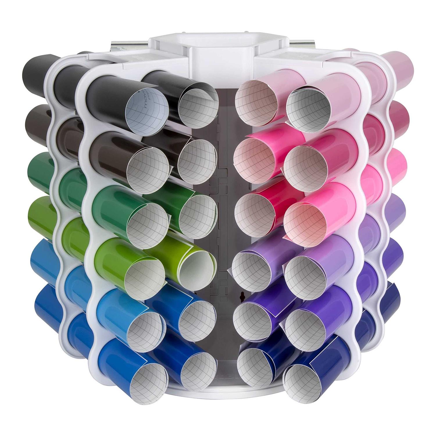 The ArtBin Vinyl Storage Tower has the capasity to safely store up to 36 vinyl rolls. Not only can you store your rolls of vinyl but there is a designated open space onto to store your cutting tools. Storing your vinyl in the ArtBin Vinyl Storage Tower will not only organize your craft space but make it look even more aesthetically pleasing!