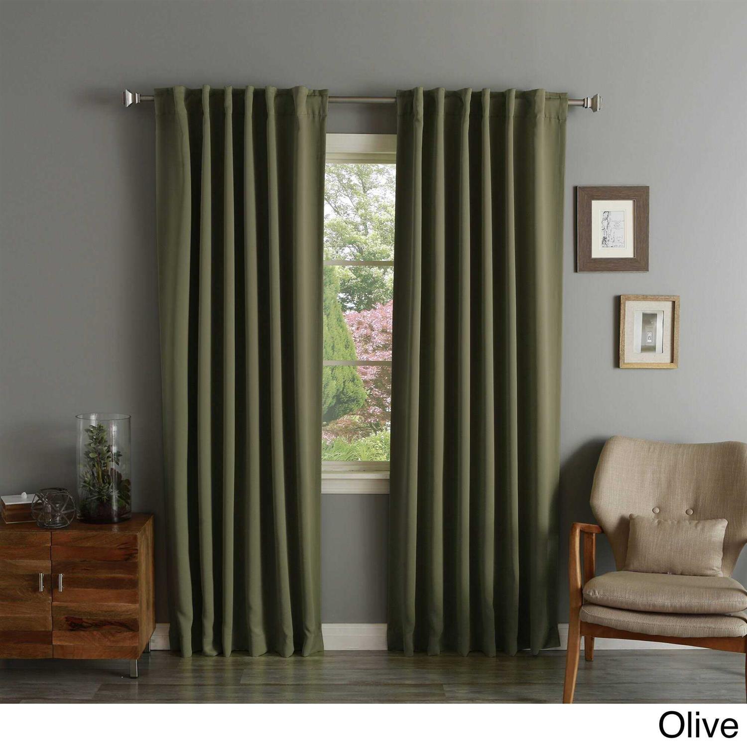 Aurora Home Solid Insulated Thermal Blackout Long Length Curtain Panel Pair – 52″W x 102″L – Olive