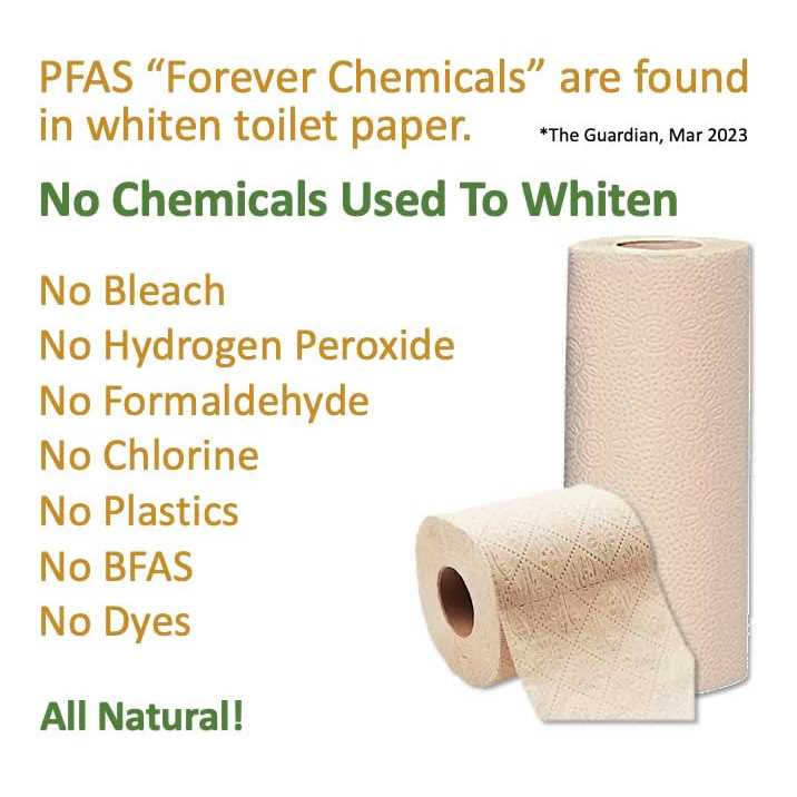 - No toxic chemicals used to soften or whiten the paper. No bleach, no cholerine, no dyes, no inks, no formaldehydes.