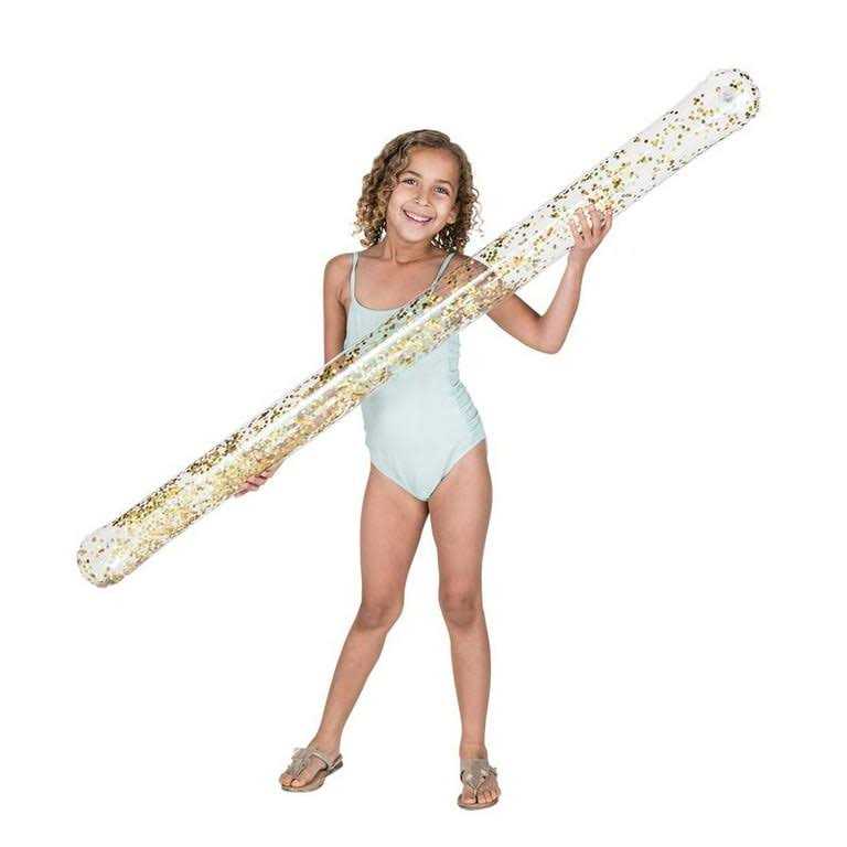 Gold Glitter Pool Noodle: Featuring a mix of shimmering gold glitter pieces inside each one, these pool noodles are perfect for pool toys and games. Vinyl. 6 pcs. per unit Inflated, 60″ x 3″ diam. Glitter in the pool? You got that right! Featuring a mix of shimmering gold glitter pieces inside each one, these pool noodles are perfect for pool toys and games. Great for a leisurely float or action-packed water wars, these are sure to make a splash with both kids of all ages and adults at all your summer soirées!