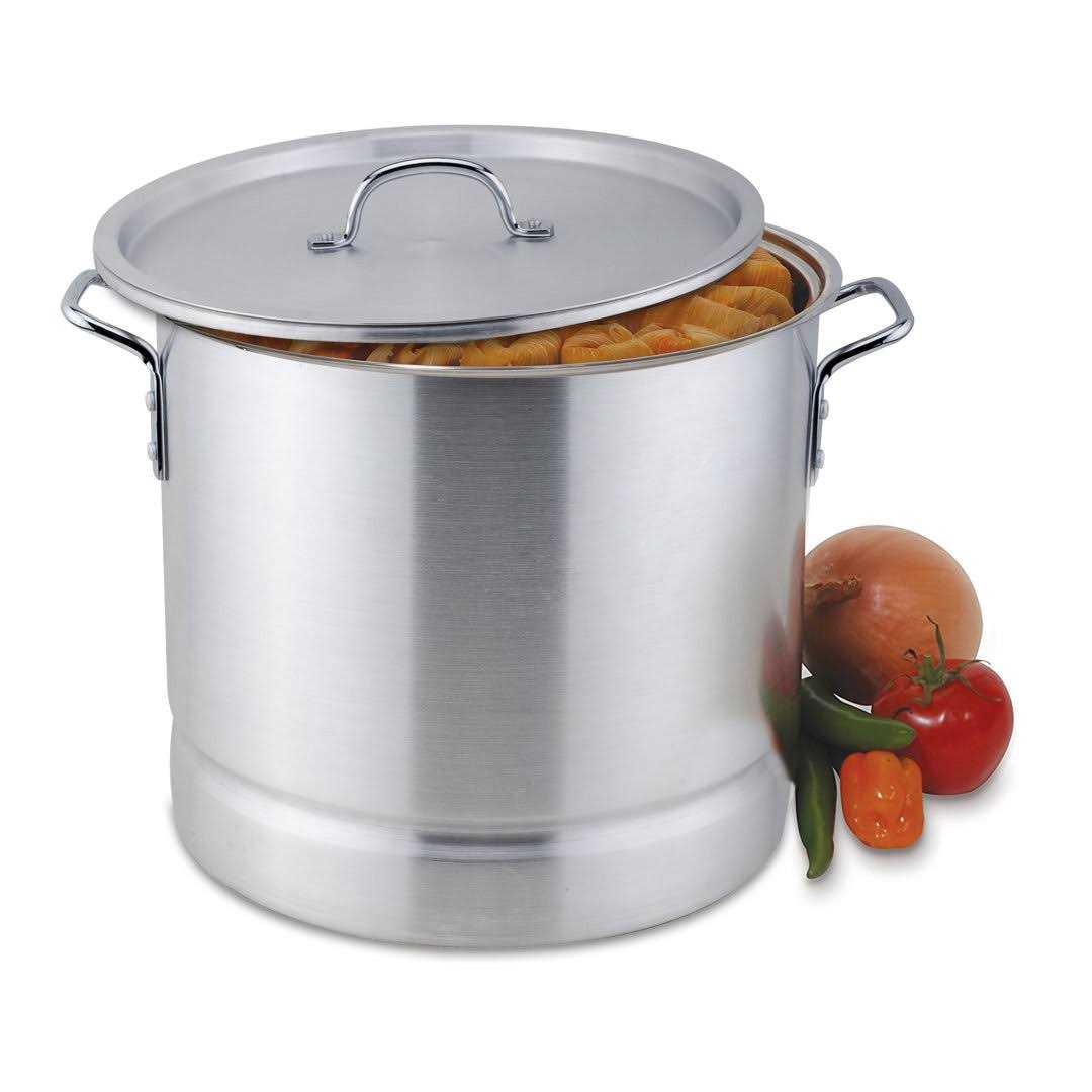 The Bene Casa 20Qt Aluminum Stock-Pot with Steamer, is not just excellent your Home, but great for Commercial Restaurant use as well. The Durability of the Aluminum make it perfect for Restaurants as they are lightweight and very durable, able to handle large quantities of back to back cooking. With the Steam Rack included, you can now easily use the you Stock-Pot to cook tamales, seafood and vegetables the healthy way. A matching, tight fitting stainless-steel lid keeps moisture and nutrients in for tastier, healthier food, with even, fast heating across the whole pot ensuring consistency for your cooking. The pot is perfectly sized for soup, chili and stew as well making it versatile for cooking. Its Solid Aluminum is made durable for long lasting wear making for multiple uses. This steamer pot has a coordinating lid to keep in heat and nutrients as well, while cooking. Its Riveted pot and lid handles stay cool for safe, easy carrying and cooking maneuverability.