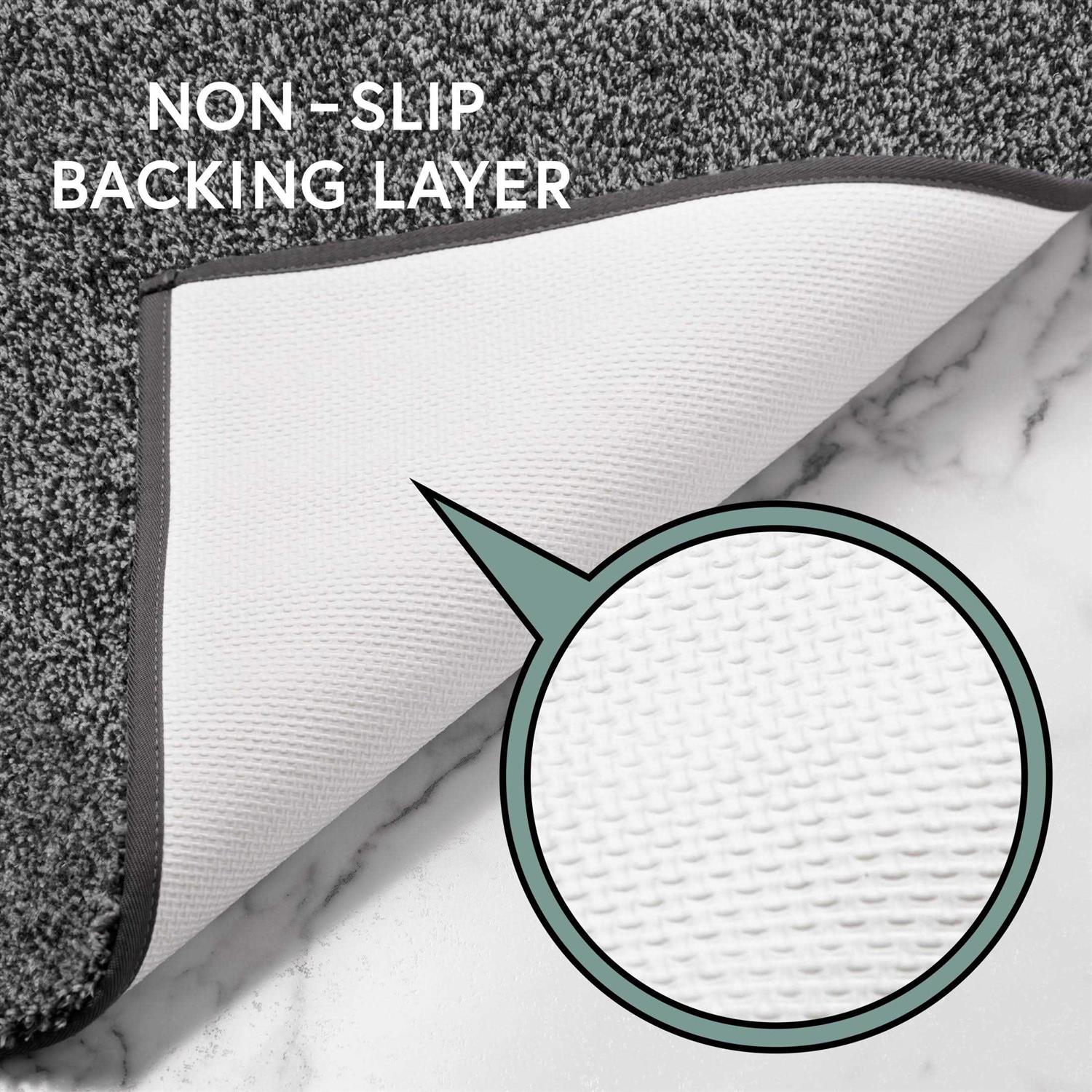 Choose from available size options. Choose from available color options. Polyester material. Non-skid back. Absorbent and comfortable. Machine wash, hang dry. Step out of the shower onto comfort with the Better Homes & Gardens Solid Bath Rug. This quality bath rug is made with soft poly material and comes in your choice of colors. Its plush fabric absorbs wetness while the back offers a non-skid material that keeps it in place.DimensionsSmall: 24L x 17W in.Medium: 34L x 20W in.Large: 39L x 23W in. Color: Grey Shadow Heather.