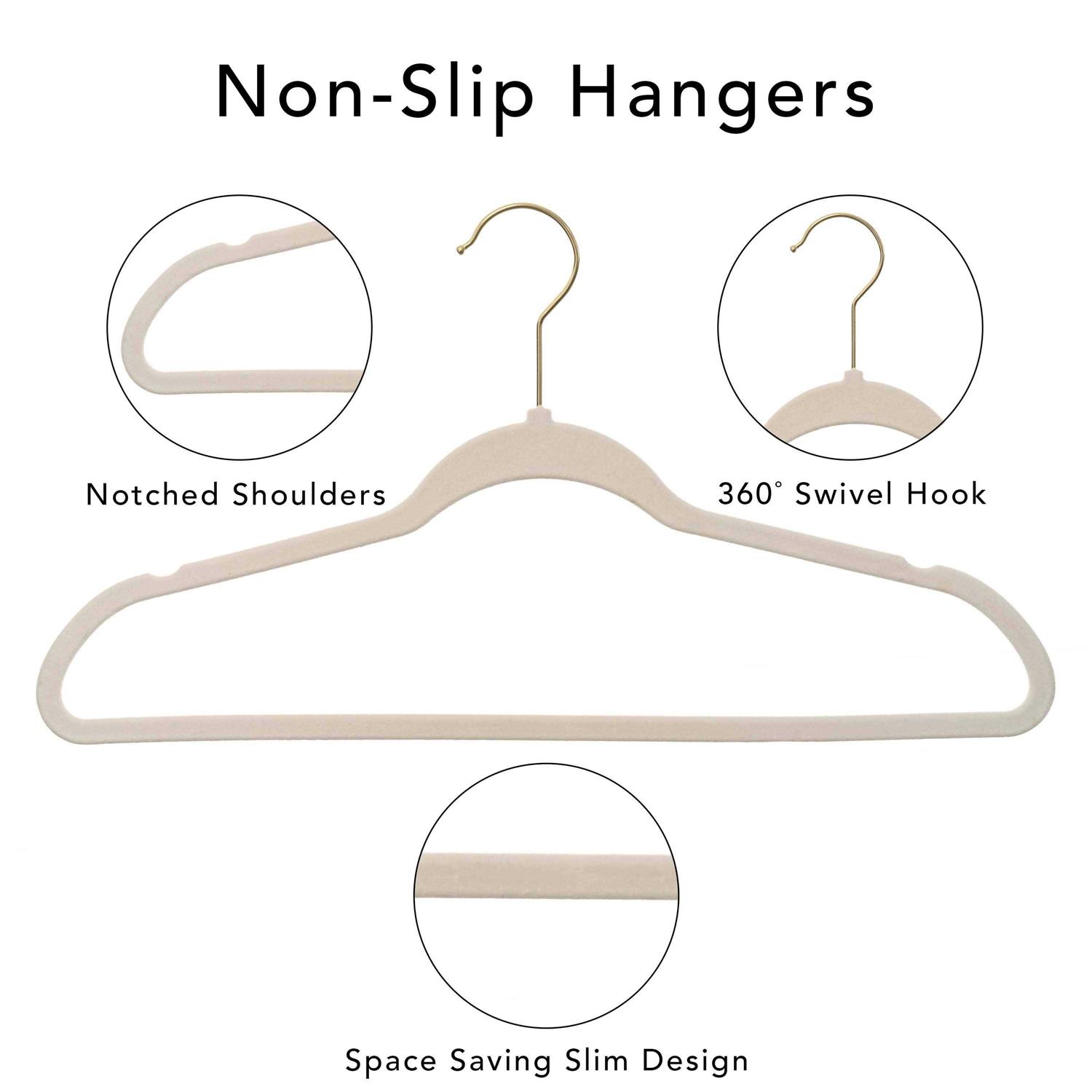 Designed to effectively keep your closet organized with slim, space saving construction, these stylish neutral hangers are also non-slip with non-damaging felt and are sure to keep your garments in their original condition and shape. Certain to spruce up mismatched, unsightly hangers in your closet, these elegant and modern non-slip hangers are perfect for any space where you hang garments from kids’ rooms to your chic master suite or walk-in. Use in hallway closets or guest rooms to impress all that come into your home and happily say goodbye to the days of shabby, mismatched hangers.
