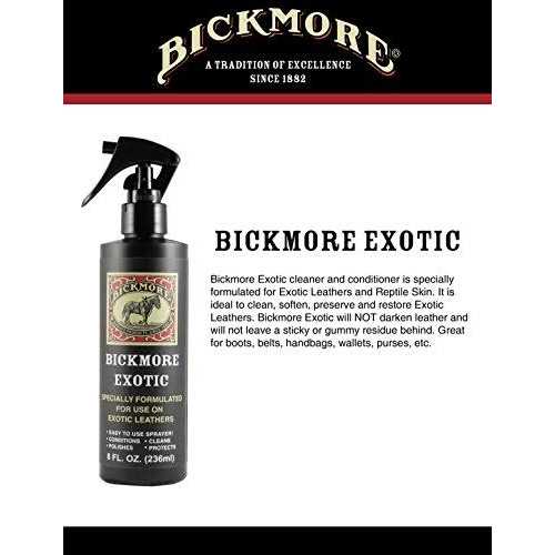 - SPECIALLY FORMULATED FOR EXOTIC LEATHERS AND REPTILE SKIN: The special ingredients found in Bickmore Exotic are hand-picked to provide your exotic lea.