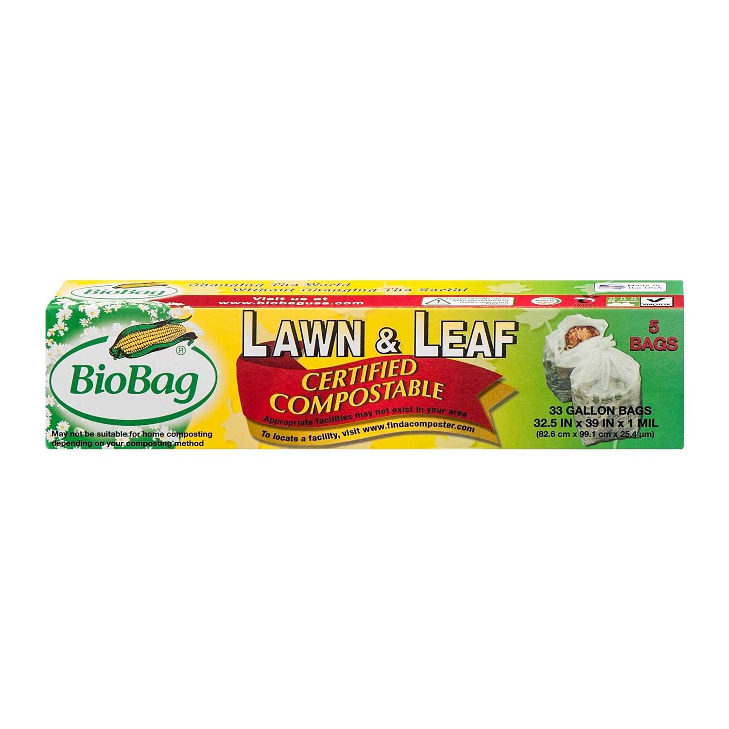 BioBags are the Alternative To Regular Plastic Bags. BioBags are certified compostable, meet ASTM 6400 and are made from a resin based on plant starches, vegetable oils and compostable polymers. BioBag Lawn and Leaf bags are a full 33 gallon capacity and are perfect for communities who have banned regular plastic bags for the collection of yard waste. BioBags can be composted right along with the yard waste in a municipal compost facility. Lawn and Leaf bags hold more waste, are more durable, and are easier to use than paper yard bags.