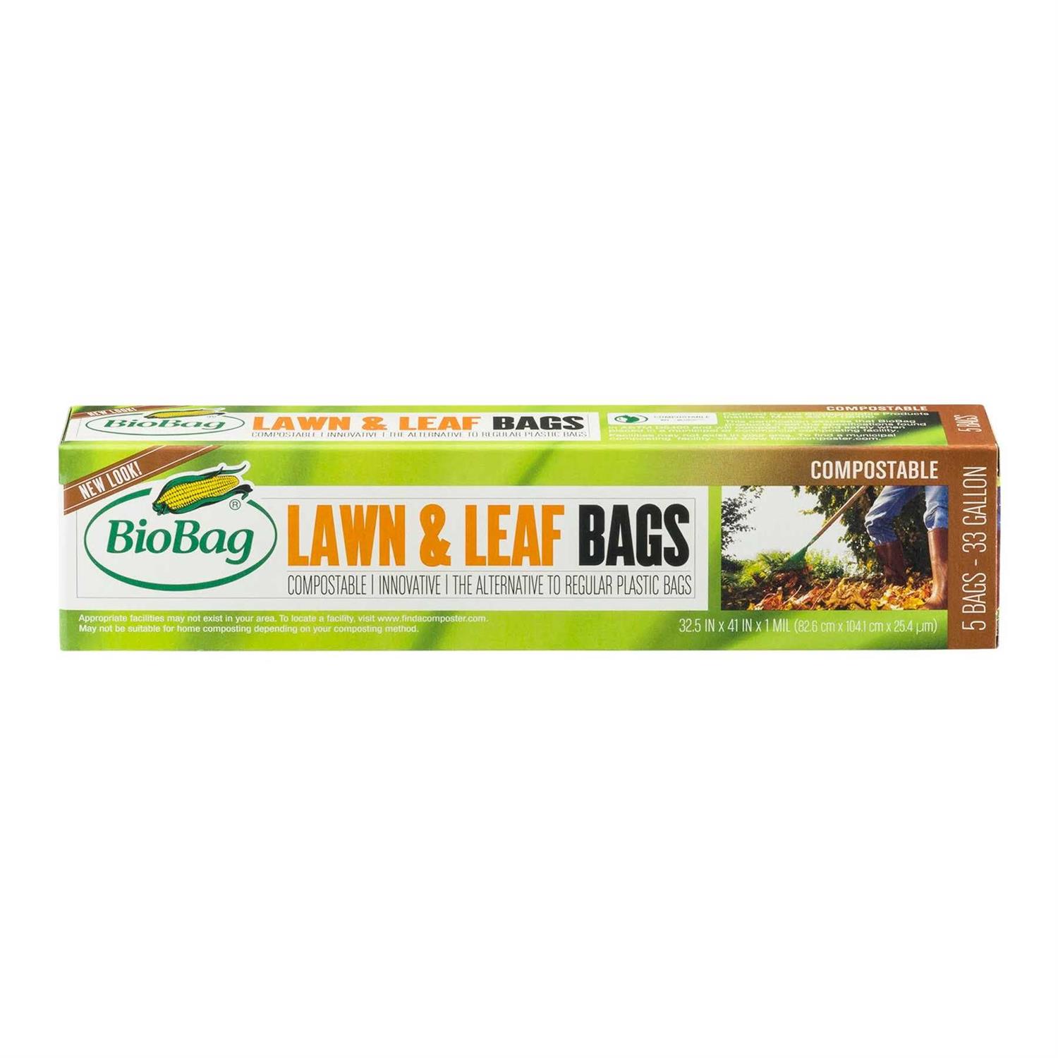 BioBag Lawn & Leaf Bags, Compostable, 33 Gallon – 5 bags