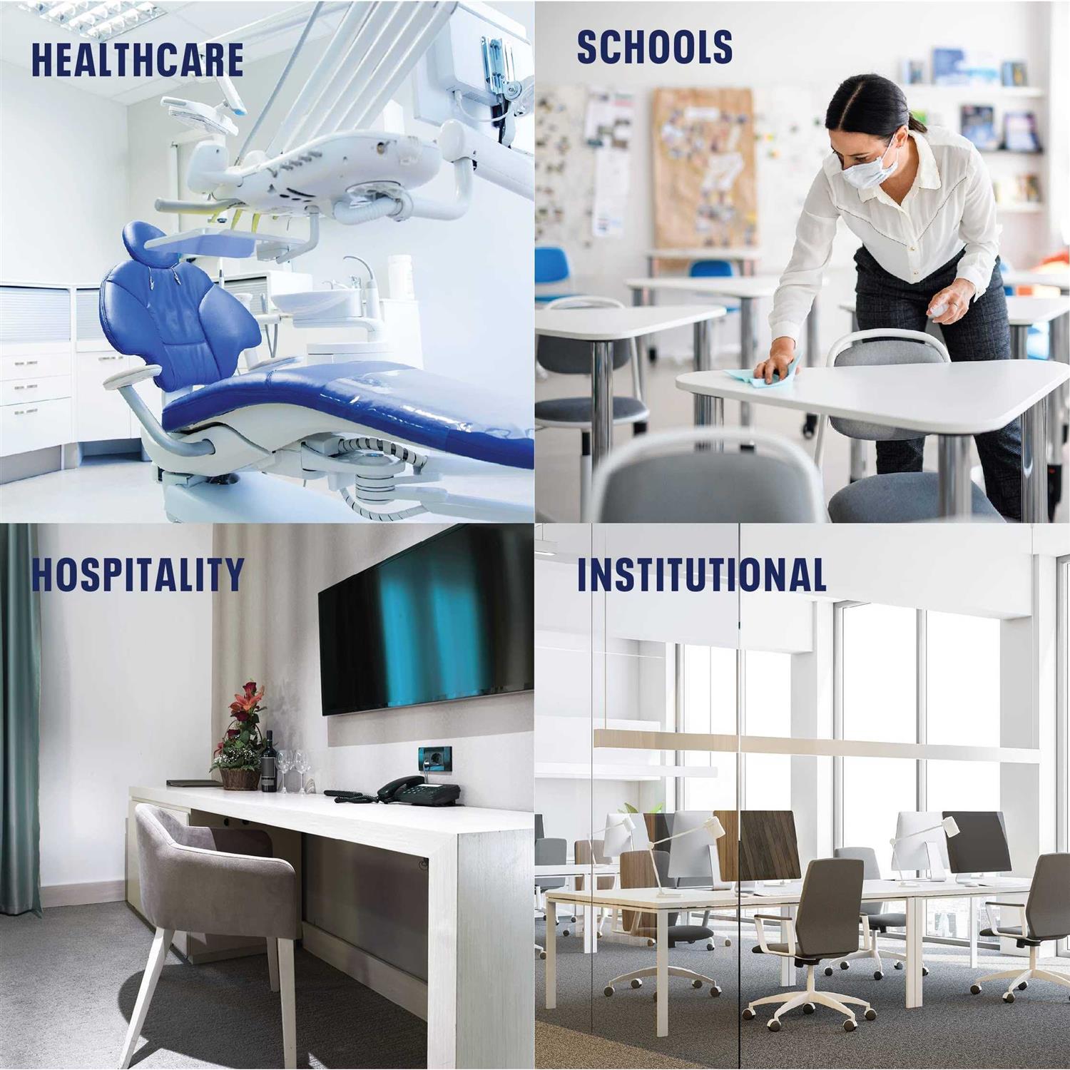 The Botanical Power Of Bioesque Bioesque is an unique botanical disinfectant solution that is capable of cleaning, sanitizing, disinfecting and deodorizing in a single step. This innovative disinfectant solution features a patented Thymox technology and a botanically derived active ingredient from thyme oil. 100% biodegradable and No VOC (Volatile organic compounds) Ready to use full strength with no further dilution required One-step disinfectant with bactericidal, virucidal, tuberculocidal and fungicidal efficacy Approved by both Health Canada and EPA to be use against SARS-CoV2 (the coronavirus that causes COVID-19) Disinfects, sanitizes, cleans and deodorizes a wide range of surfaces Safe on food contact surfaces and no rinse or wipe required Completely safe on fabric and does not cause discolouration Non-corrosive, environmentally friendly and perfect for everyday use Does not contain chlorine, phosphates, bleach or harsh chemicals No PPE (personal protective equipment) required Strong mold and mildew eliminator Heavy duty odour eliminator POWERED BY THYMOX TECHNOLOGY SPEED, STRENGTH, YET GENTLE With a formula that is free of bleach and other harsh chemicals, Bioesque’s Botanical Disinfectant Solution is a great environmentally friendly choice. Powered by Thymox technology, it utilizes Thymol, a cutting-edge antimicrobial agent present as a component of Thyme Oil, to quickly power through grime and destroys the germs that it encounters. How efficiently does this professional-grade product work? Kills 99.99 percent of viruses in one minute. Kills 99.99 percent of bacteria in two minutes. Kills 99.99 percent of fungi and molds in three minutes. Kills Mycobacterium tuberculosis in three minutes. Bioesque Efficacy RECOMMENDED FOR USE IN: This versatile solution can be used in various different applications and settings including both residential and commercial settings. Below are a list of common places that Bioesque solution can be used and applied. SUITABLE FOR USE ON: Bioesque can be used on an impressive array of surfaces. With a formula that is free of bleach and other toxic chemicals, it requires no special precautions or equipment to use. Application Bioesque is best applied by using an electrostatic sprayer as they use significantly less solution, have a faster application, reduced labour, and provide an even coverage. Alternatively, you can also use a trigger sprayer to apply. When used with a trigger sprayer, please ensure the surface remains wet for up to 55 seconds (for COVID-19) to allow appropriate dwell time. Bioesque, A Perfect Solution For Gyms