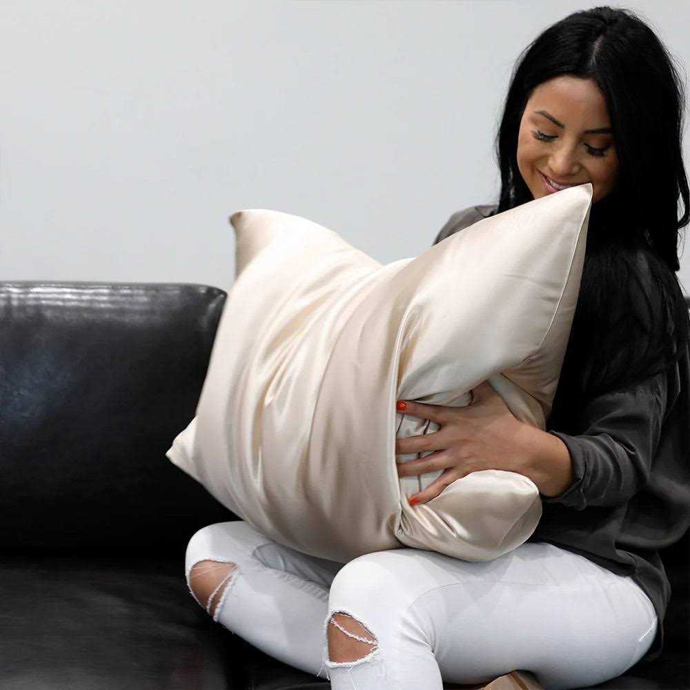 With over thousands upon thousands of verified 5 star reviews, it’s clear that the Blissy 100% Mulberry Silk Pillowcase delivers on its promise to give you beautiful hair, glowing skin, and the best night’s sleep. With other pillowcases, natural oils from your hair, skin, and any lotions or serums you put on before bed, are absorbed and build up in your pillowcase. This dries your hair and your skin out and creates a filthy breeding ground for bacteria. When your face and hair rub against this dirty surface while you sleep, you end up with clogged pores, breakouts, inflamed dry skin, and greasy, dirty, dry hair. The friction caused by other pillowcases only amplifies the damage done to both. You’re further irritating and drying out your skin, even creating sleep wrinkles, while your hair suffers from breakage, split ends, and tangles. But because Blissy pillowcases are made from the highest quality, highest rated silk available none of this happens. You will wake up with healthy shiny untangled hair and hydrated clear skin. Blissy’s silk also reflects infrared heat at the microscopic level keeping you cool while you sleep, and there are no nooks or crannies in the silk where dust mites and other allergens can attach themselves to, making Blissy hypoallergenic.