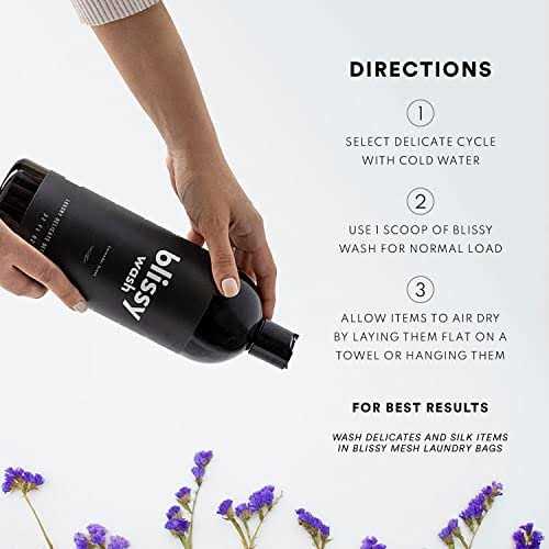 Blissy Wash is specially formulated to keep your delicates looking new wash after wash. It gently cleanses while maintaining the shape and texture of fabricespecially the natural luster of the silk. Our unique plant-derived formula is hypoallergenic and safe for all skin types. Plus its naturally scented with lavender oil so your laundry comes out smelling like a field of flowers! Blissy Wash works with high-efficiency (HE) and regular washers. To keep your Blissy items looking their best, place them in the Blissy Mesh Wash/Laundry Bags and wash on gentle/delicate. You may also hand wash your Blissy.