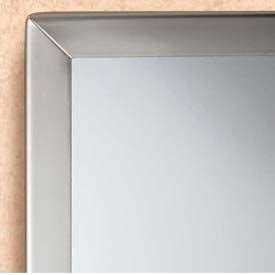 One-piece channel frame is constructed of durable stainless steel with a bright-polished finish and mitered corners. Glass is electrolytically copper-plated that protects against silver spoilage. Galvanized steel backing is secured to concealed wall hanger with theft-resistant locking device. Mirror corners and backing are protected by shock absorbing material. Mirror can easily be replaced due to Philips-head frame screw design. Dimensions: 24″W x 36″H.