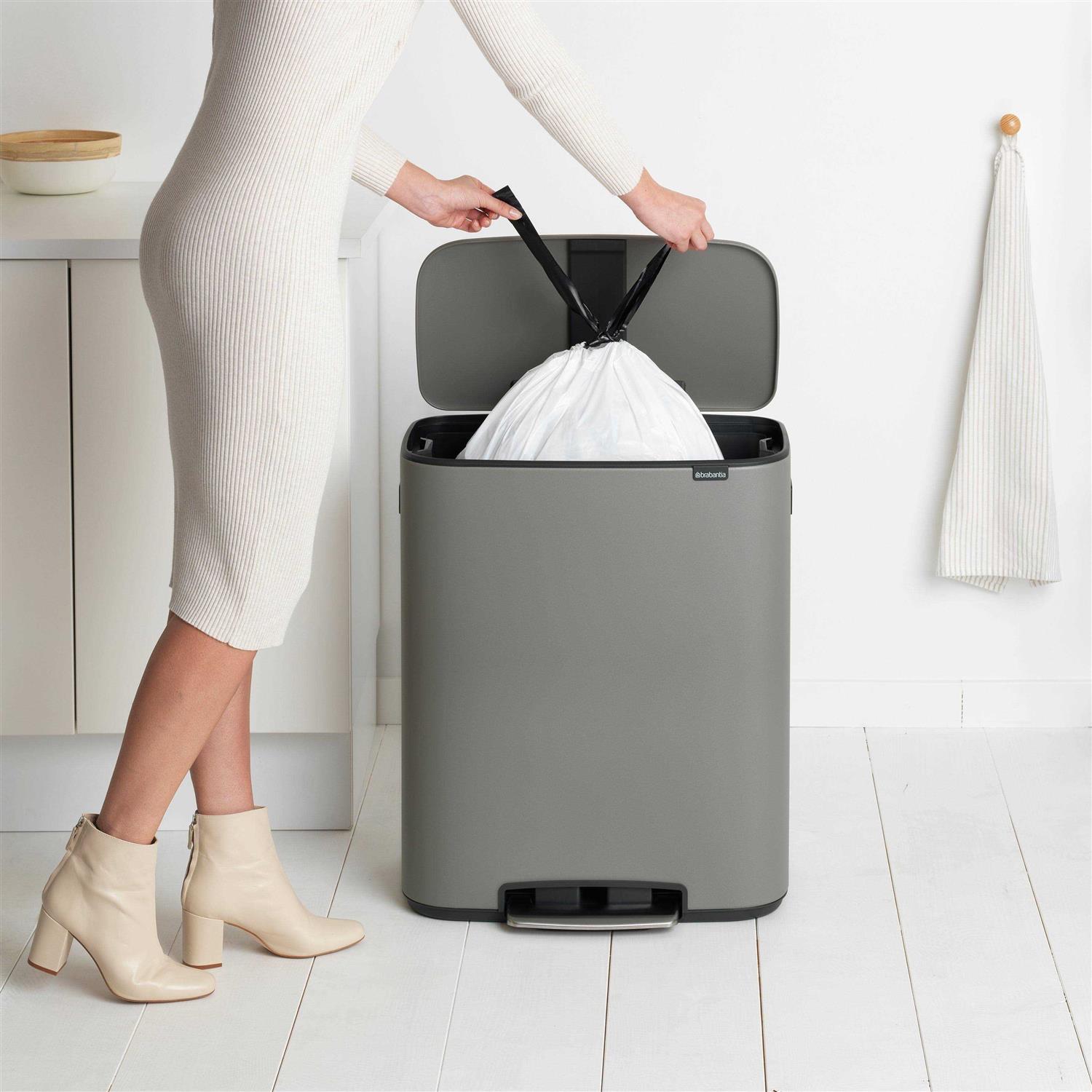 Bo has a beautiful design with plenty of capacity and is space-efficient to fit closely to the wall or in a corner. Each bin is individually sprayed to create a contemporary and luxurious mineral textured finish for an expressive look. Colours have been carefully selected by expert trend forecasters giving your kitchen a cool, modern vibe. Additional features Soft closure and super-light pedal operation Easy to clean, with removable inner bucket Non-slip base – protects the floor and keeps the bin steady Extra-large inner bucket – ideal for a busy family home Easy to move around with sturdy grips Uses Brabantia PerfectFit bin liners, size code M. Beautiful sustainable These waste bins not only help you to organise and separate your waste, but are pretty sustainable themselves too. These beauties are Cradle-to-Cradle Certified at level Bronze. They meet strict requirements for the (re) use of materials, renewable energy, water management and social justice. How beautiful is that? Brabantia has made a commitment to move to 100% circular design.