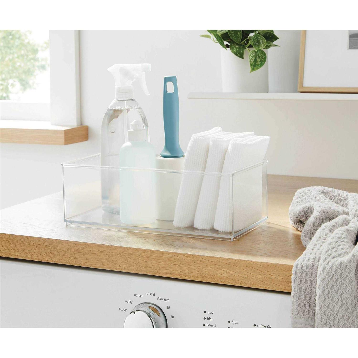Its easy to keep the smaller items in your home organized with the 12 x 6 x 4 AllPurpose 12 Storage Bin from Brightroom. The bin has a stackable design so you can combine several to best suit your organizational needs, and a clear construction lets you see its contents at a glance for added convenience. Brightroom started with a simple truth When youve got it together, you feel better. Our versatile designs reveal the possibility in every closet, cupboard and drawer, and work together to create brilliant ways to organize your every day.Dimensions Overall 4 Inches H x 6 Inches W x 12 Inches DCare Cleaning Hand Wash