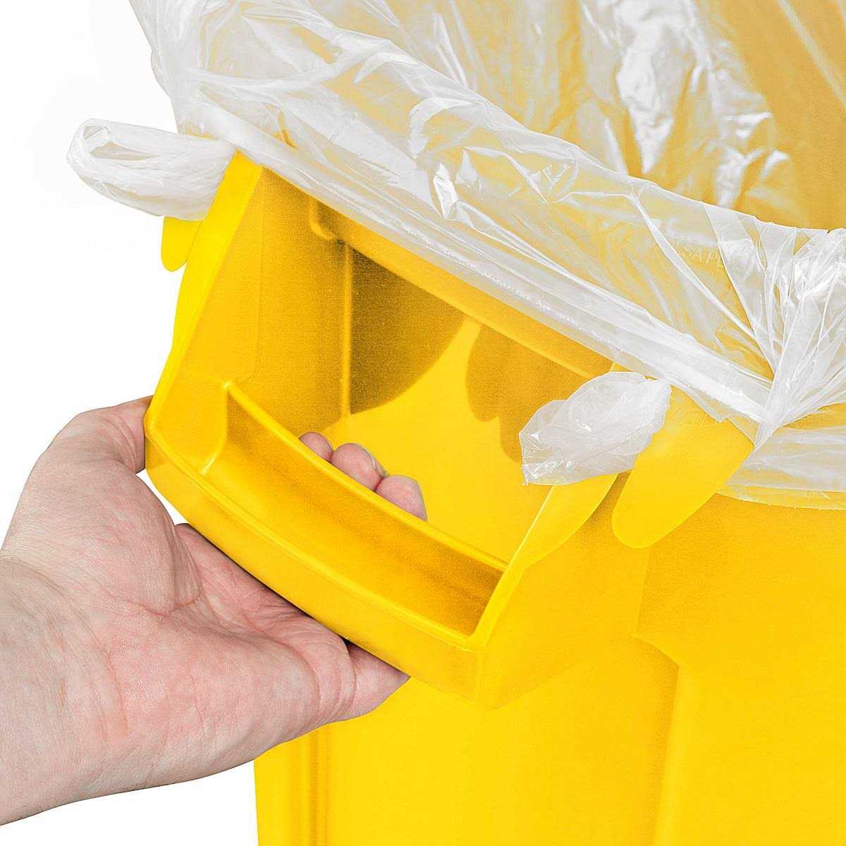 Making the most trusted name in containers even better with innovative technology tough standards and a host of lid dolly and caddy accessories. Innovative integrated venting channels dramatically reduce force needed to remove a filled can liner by over 50% compared to traditional containers. All-plastic professional-grade injection-molded LLDPE construction will not rust chip or peel and and resists dents and ultra-violet UV rays. Reinforced rim adds strength and double-ribbed base stability. Built-in non-slip handles let you nest multiple containers without jamming. Integrated cinches hold liners without knots. Meets NSF and ANSI standards for indoor or outdoor refuse storage. Made in the USA. Sets the standard for reliable garbage collection in high traffic areas. Built tough and versatile these garbage cans feature revolutionary venting channels that let air flow into the receptacle making liners up to 50% easier to remove. Integrated cinches allow bags to be attached to handles without knots for faster liner changes while contoured base handles and rounded top handles make it easier for staff to lift and transport these receptacles in any facility. Constructed of the high-quality materials these crush-resistant garbage cans have heavy-duty reinforced bases that hold up even when dragged across rough surfaces. These trash cans are stackable to save space and provide an unbeatable value with their easy-to-clean seamless construction UV inhibitor and do not fade warp crack or crush.