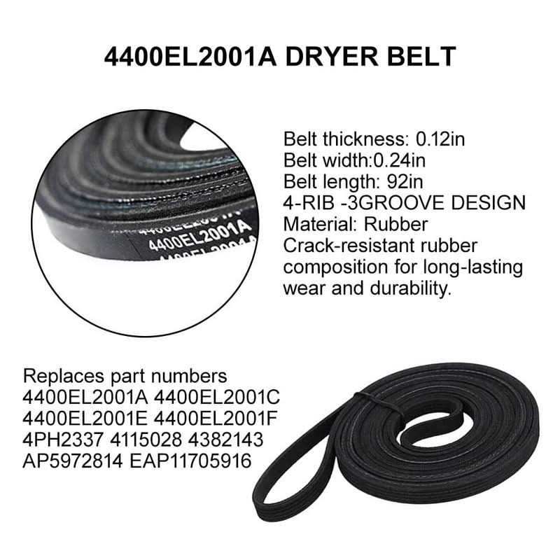 Ideal Replacement?: Want new dryer rollers kit that matches the original, for far less than going back to the dealership? This dryer wheels repair replacement was specifically designed to look and function the same as the original roller bearing kit on LG Dryer. While this is NOT a genuine LG parts, it is a direct replacement and it will appear, fit and work like the factory part. ? UPGRADED Dryer Repair Kit for LG?: Drum Roller – Includes roller wheel and roller axle. wear-resisting black rubber make the drum rotate more stable. Idler Pulley – Including the idler arm, the idler pulley and spring. Bearings provides long-lasting belt tension and smoother roller rotation. Drive Belt – Tooth rubber with pliable and Double thickness – make the movement smooth and noiseless. ? Fitment?: Fit for most LG and Kenmore clothes dryer model , please check the last pictures for your model. If you are not sure if it is compatible with your dryer, please let us confirm for you. ? Replaces Part Number?: 4561EL3002A idler pulley: replaces 4382082 AP4438243 1267530 4561EL3002B AH3523033 EA3523033 EAP3523033 PS3523033 | 4400EL2001A drive belt: replaces 4400EL2001C 4400EL2001E 4400EL2001F 4PH2337 4115028 4382143 687152240036 AP5972814 EAP11705916 PS11705916 | 4581EL2002C dryer drum rollers: replaces 4581EL2002C 4581EL3001E 4581EL2002A 4581EL2002B 4581EL2002D 4581EL3001A 4581EL3001C 4581EL3001E 2701044 AP5688895 PS8260240 EAP8260240. ?