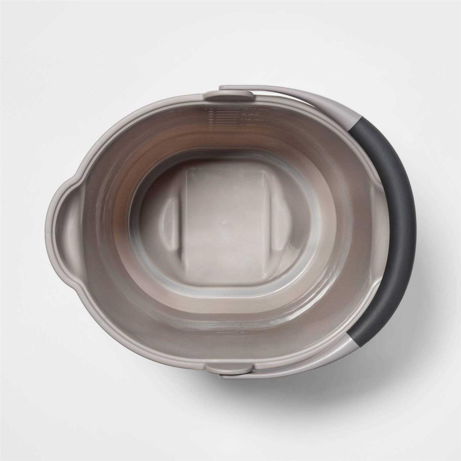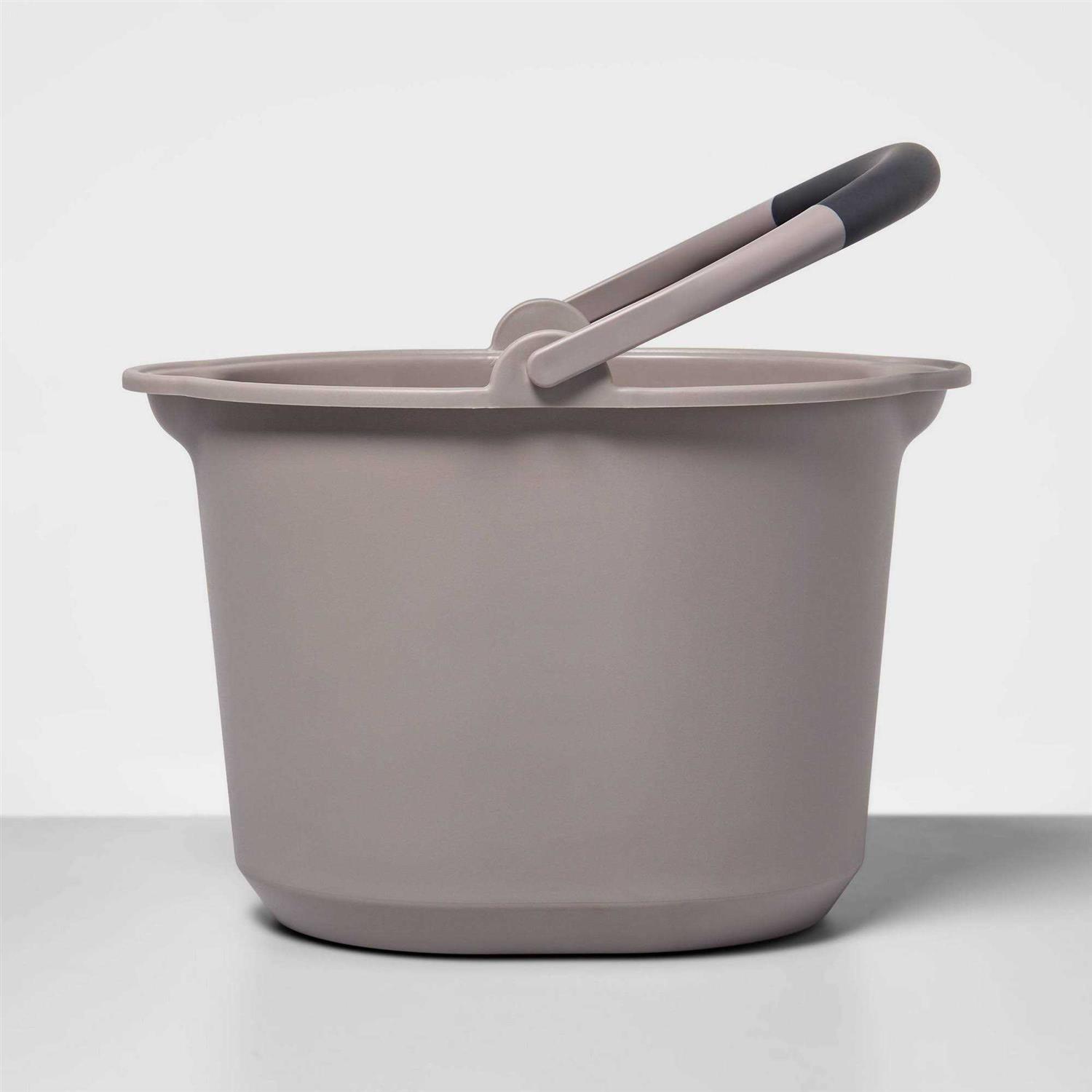 For cleaning projects large and small, choose the 11-Quart Bucket from Made By Design. This medium-sized cleaning bucket has a sturdy handle that makes it easy to carry with you as you work, and the pour spout and bottom grip make it a cinch to drain when the cleaning is done. The oblong design fits a variety of brushes, and the plastic construction stands up under regular use.