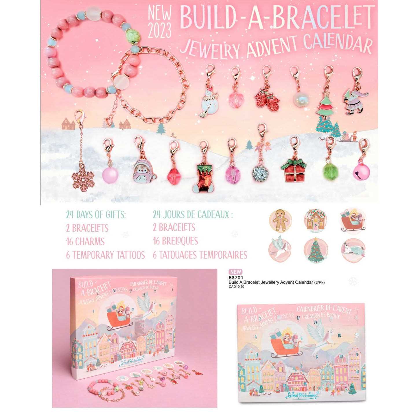 Introducing our Build A Bracelet Advent Calendar, the perfect way to count down the days until Christmas in style! This festive and fun calendar features 24 charms and tattoos, each nestled in its own compartment for a daily surprise. By the end of the advent calendar, you will have two bracelets full of festive charms! Our Bracelet Advent Calendar includes a variety of charms, from delicate and dainty beads to whimsical holiday characters ensuring that every day you receive a unique treat! Your final bracelets will make the perfect addition to your jewelry collection and a Holiday season your little ones won’t forget! Recommended for ages 3 years+.
