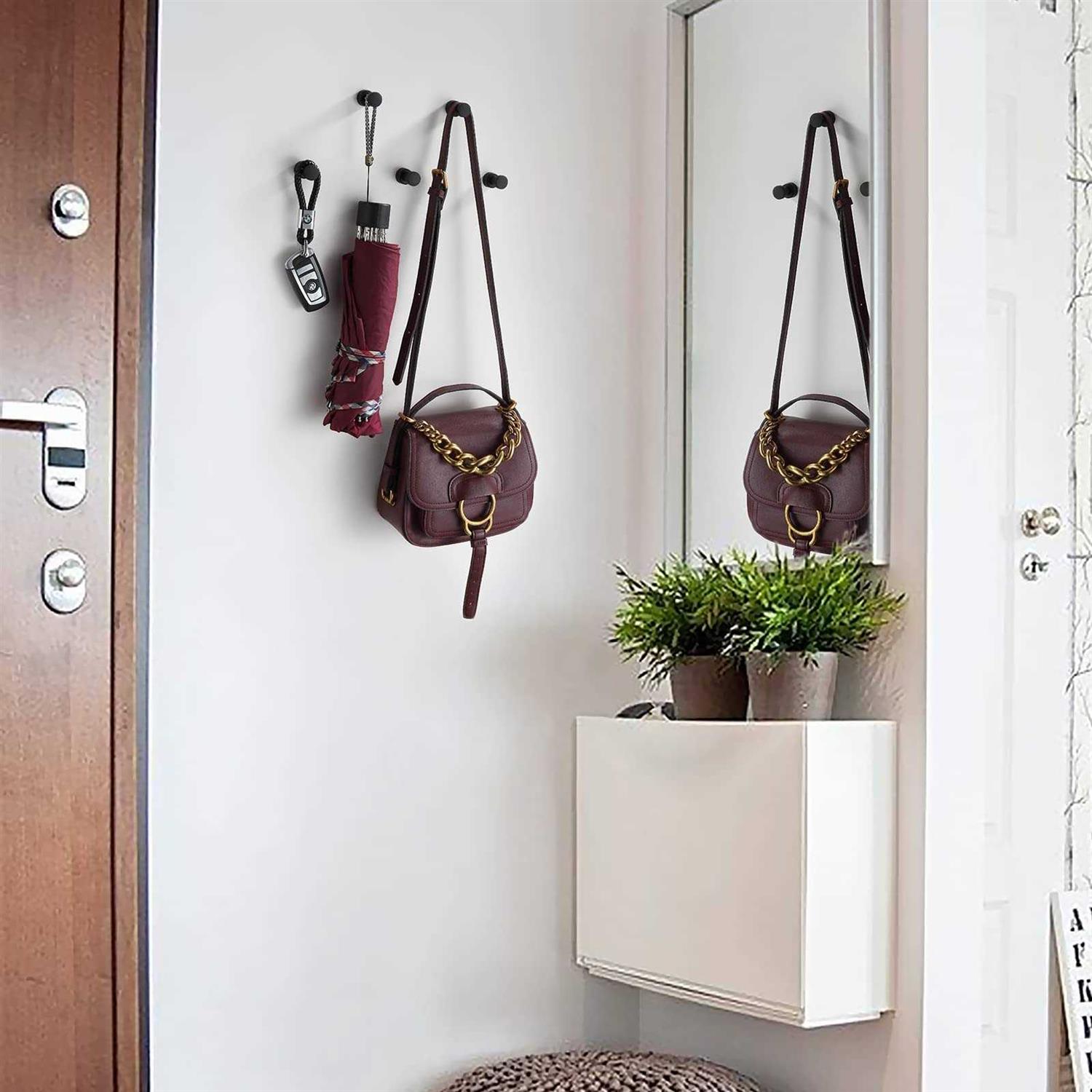 【SMALL SIZE & LIGHT WEIGHT】Overall size:0.67×1.18″(17x30mm) Net weight:0.09lb(43g). Small size and light weight can more generously and conveniently to use. 【STABLE HANGING & NON-FALLING】 Thicker and larger hook, more stronger to prevent items from falling. 【FASHION DESIGN & CLASSIC STYLE】Stylish smooth appearance, soft touch without scratches your hands, clean silhouette with minimalist style coordinate with morden house and optimizing available space. 【SOLID AND QUALITY BRASS CONSTRUCTION】high-grade brass construction, well engineered for increased durability, resists corrosion and tarnish, helps to maintain the brilliance of the surface. Material :Brass Color: Black Anchor : high quality non-recycled material Installation Method : Wall-mounted Package Includes: 5 Hooks,mounting hardware Care and Maintenance It with a soft damp cloth, don’t use any detergents. Keep maintaining every 1-2 months regularly. Warm Prompt All photography props are not included in the package. There may be a little color aberration due to different monitor display and light influence. Due to manual measurement, there may be a little dimensional deviation.