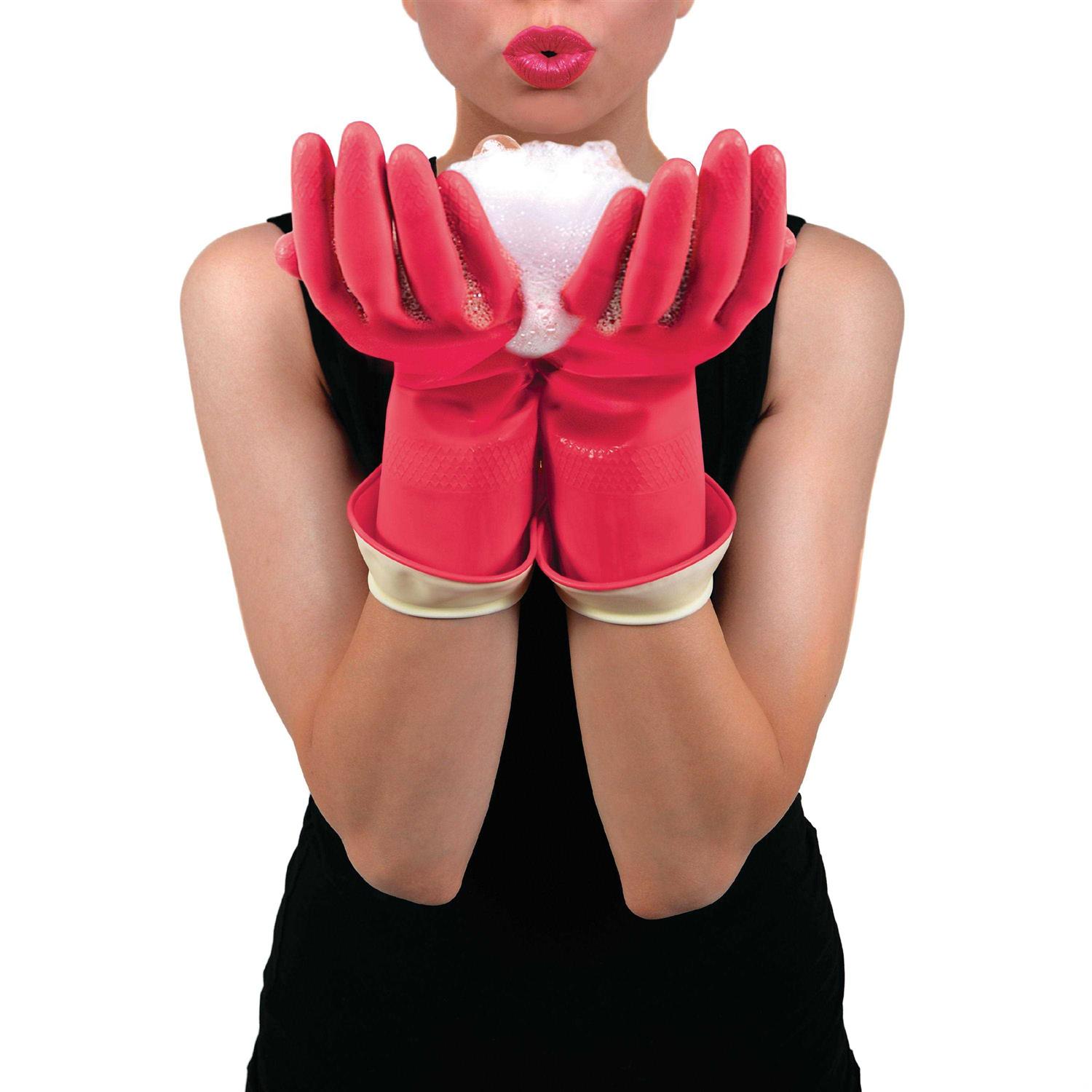 Made from 100% natural latex, our hot pink premium waterblock gloves are durable, non-toxic, and, unlike plastic gloves, allow your hands to breathe. Plus, they’re easy to get on and off thanks to a 100% cotton flocked lining. The palm and fingers have a special safety-grip texture for secure handling of even delicate and fragile items. The truly remarkable feature of our waterblock gloves is a uniquely clever cuff that fits over your sleeves to protect you and your clothing. The cuff stops splashes from getting to you and prevents water from dripping back on to you or your clothes when you raise your arm. 100% natural latex with 100% cotton flocked lining.