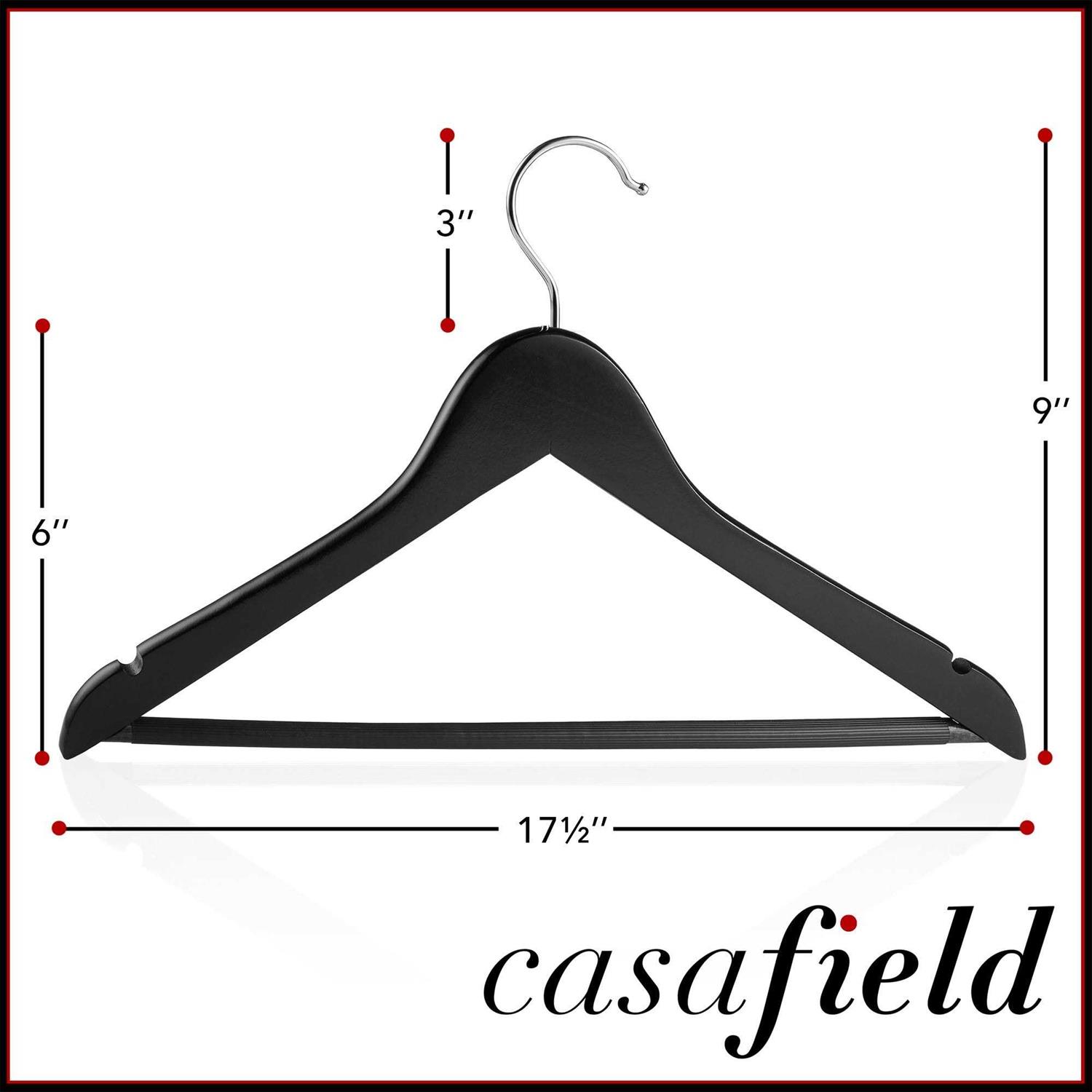 Give your closet an instant makeover and organize the closet of your dreams with these non-slip, space-saving wooden suit hangers from Casafield. Maximize your space by easily hanging a blazer or suit jacket with their matching skirt or pair of slacks to keep all your outfits ready for wear. These wooden suit hangers are great for hanging heavy and bulky winter coats, men’s or women’s suits, and much more. Color: black.