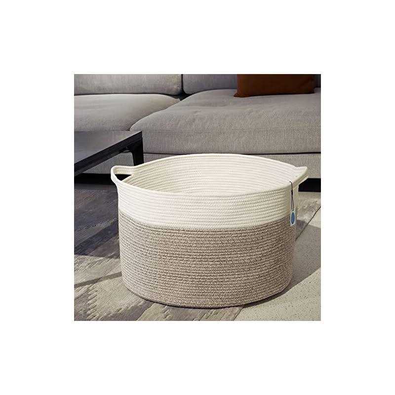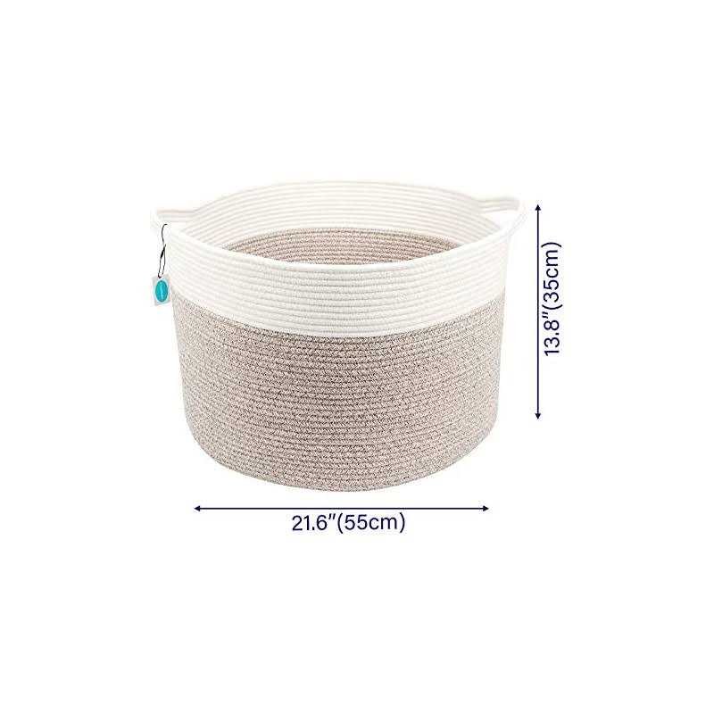 22″ x 22″ x 14″, which can be used as a storage basket to store your clothes, blankets, pillows, towels, comforters, books, and others. Safe Material: Made of 100% natural cotton, pure and undyed, the laundry basket is skin-friendly and environmentally-friendly. Just throw away the synthetic plastic laundry hamper and get the woven laundry basket for your family’s health. Neutral Design: With nice color design, the extra large cotton rope basket can be a home decor for your living room, bedroom and laundry room. Sturdy and Durable: With built-in handles and foldable design, you can carry it freely to anywhere. The woven cotton rope basket is soft but sturdy for long-lasting use. Important Things to Mention:The basket comes in folded. It is vacuum packed.It will return to its best shape if filling it up with towels or blankets. Fast removing the creases by ironing it.This is not machine-washable, but can be hand-washed or dry cleaned.
