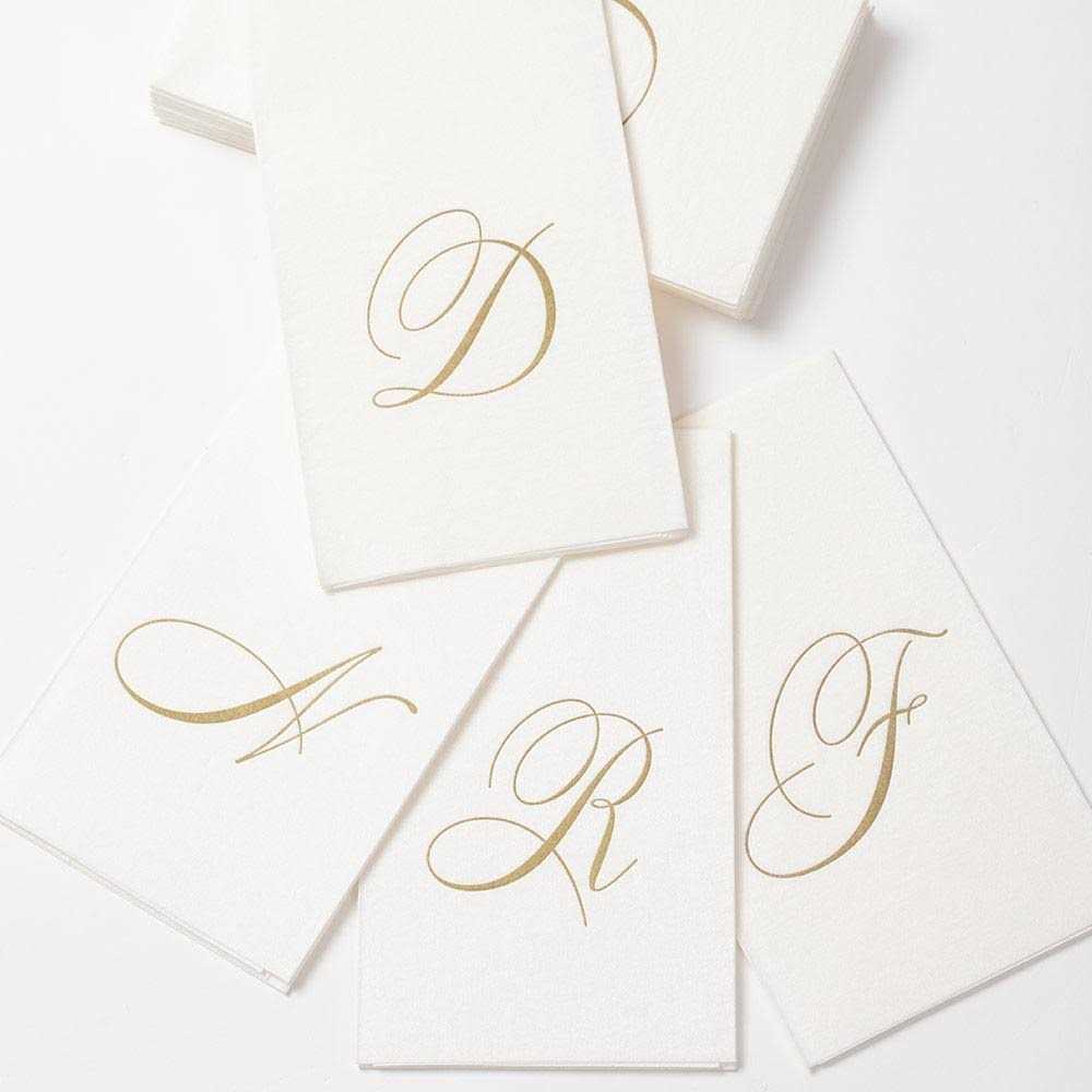 Caspari boxed initial guest towel napkins make an excellent and useful gift item. Our Paper Linen material offers the look of linen, the feel of cloth, and the convenience of paper. Paper linen napkins are extra absorbent and durable, making them ideal for entertaining and everyday use. They are made of ultra-durable, linen-like airlaid paper and printed in Germany with non-toxic, water-based, food-safe ink. These napkins are made using environmentally-conscious raw materials, which ensures that they are both biodegradable and compostable. Our vibrant color options and beautiful designs elevate any occasion while your chosen initial adds a personalized touch. 24 napkins per box.
