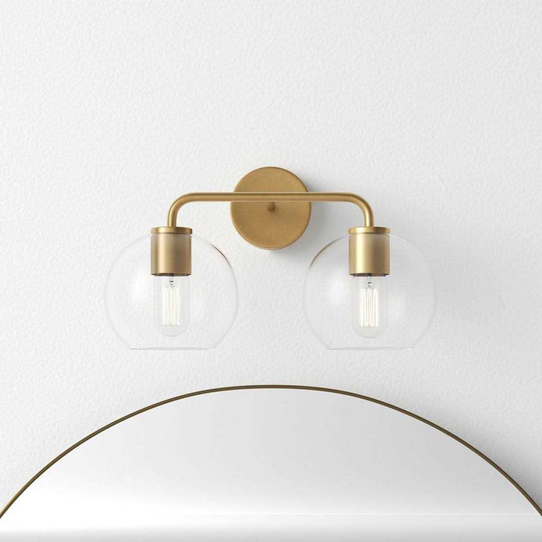 A smooth blend of mid-century + industrial elements, this vanity light’s two clear glass globe shades hang from steel hardware. It’s dimmable and suitable for damp locations, so it can brighten a bathroom. Add filament bulbs to play up the vintage-inspired vibe.