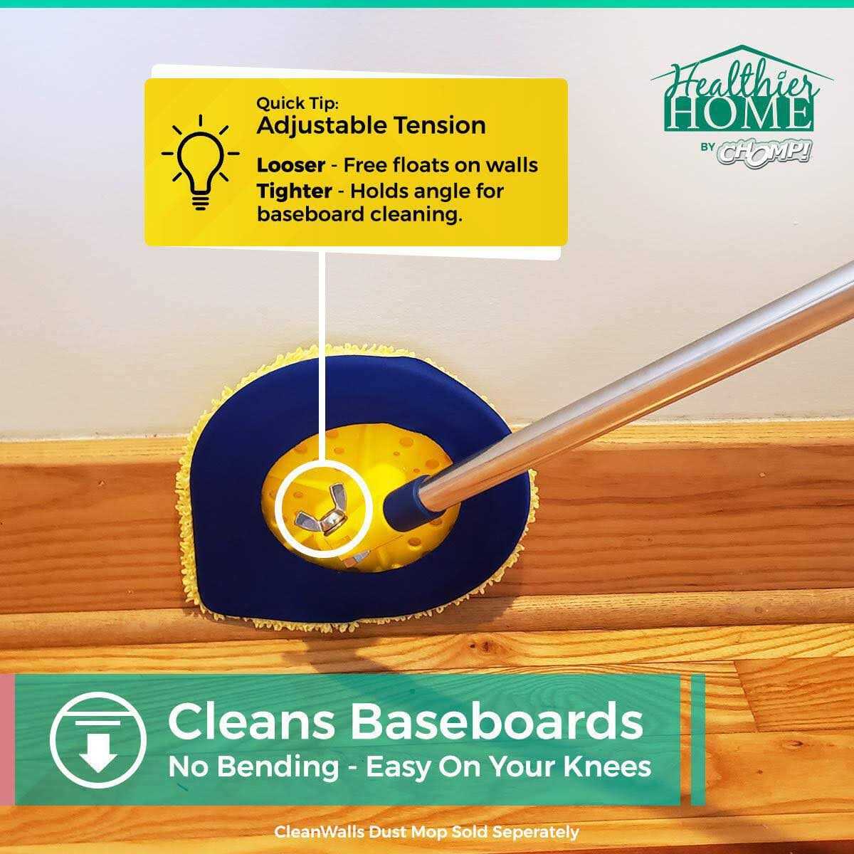 CHOMP Long Handle Wall Cleaner, 5 Minute CleanWalls Extendable Wall Washer, Ceiling Cleaner, Baseboard Duster, Telescoping Dry Dust and Wet Wash