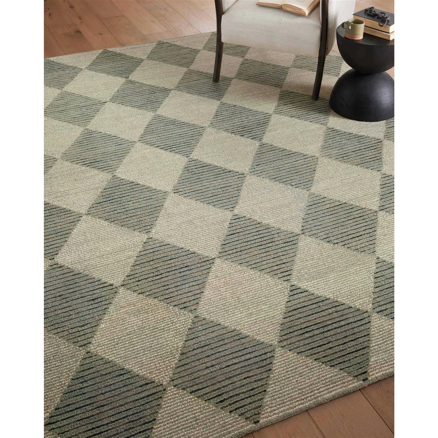 The Francis area rug by Chris Loves Julia x Loloi is inspired by the diamond and grid patterns of traditional tilework and parquet flooring.