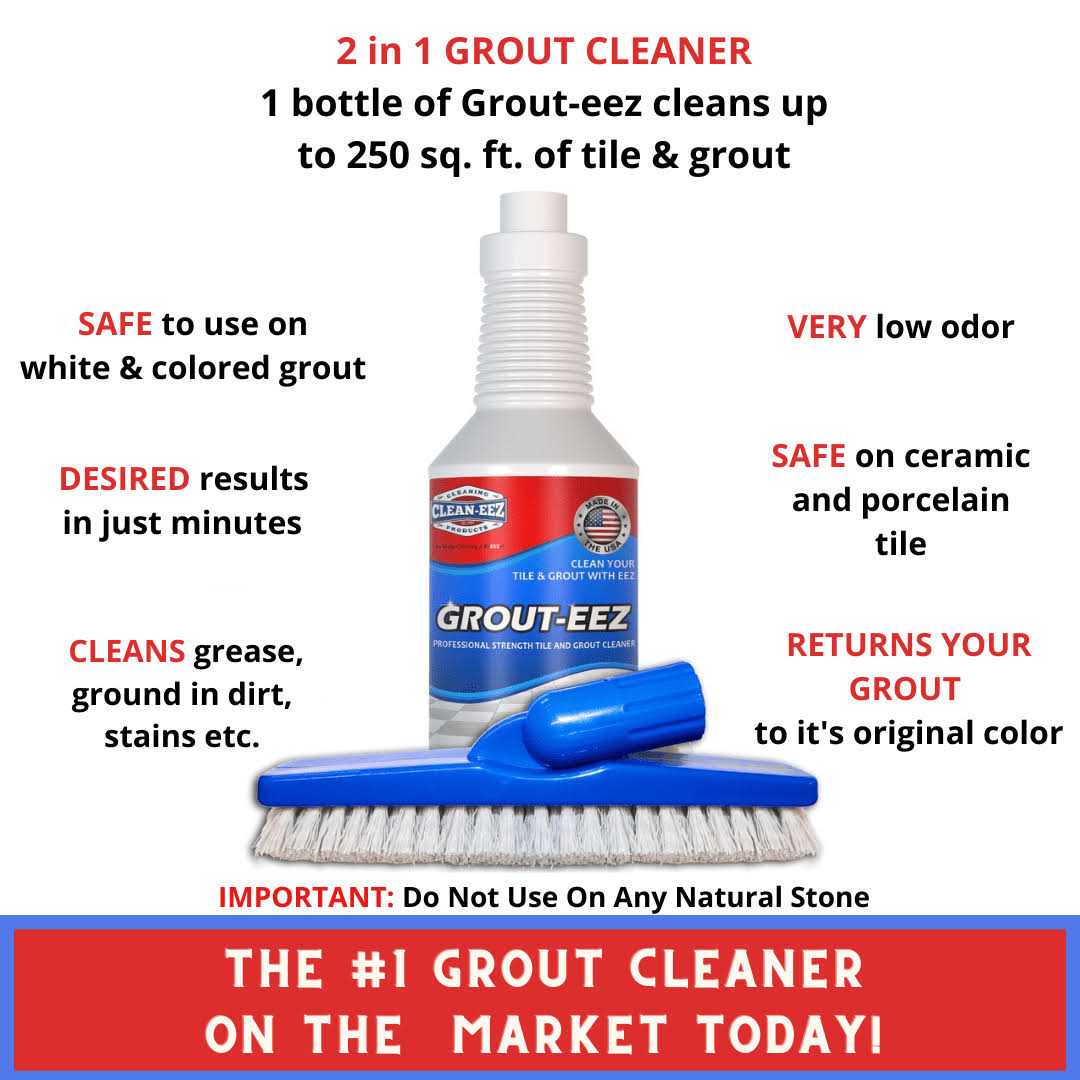 - Goes Far: With an easy pouring spout Grout-eez goes far, 1 Bottle of Grout-eez will clean approximately 250 sq feet of tile and grout.
