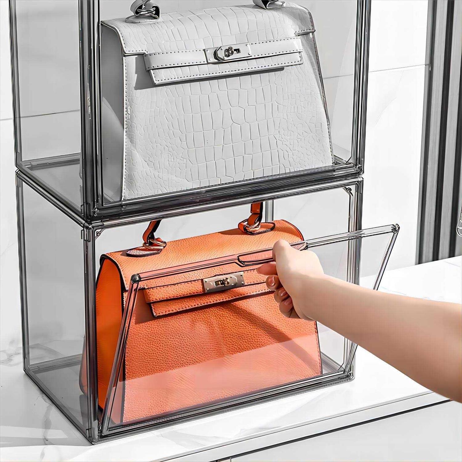 GUDEMAY Clear Stackable Plastic Storage Bins with Magnetic Lid, Dustproof Book & Cosmetic Display Cases, Large Figures Collectibles Showcase, Shoe