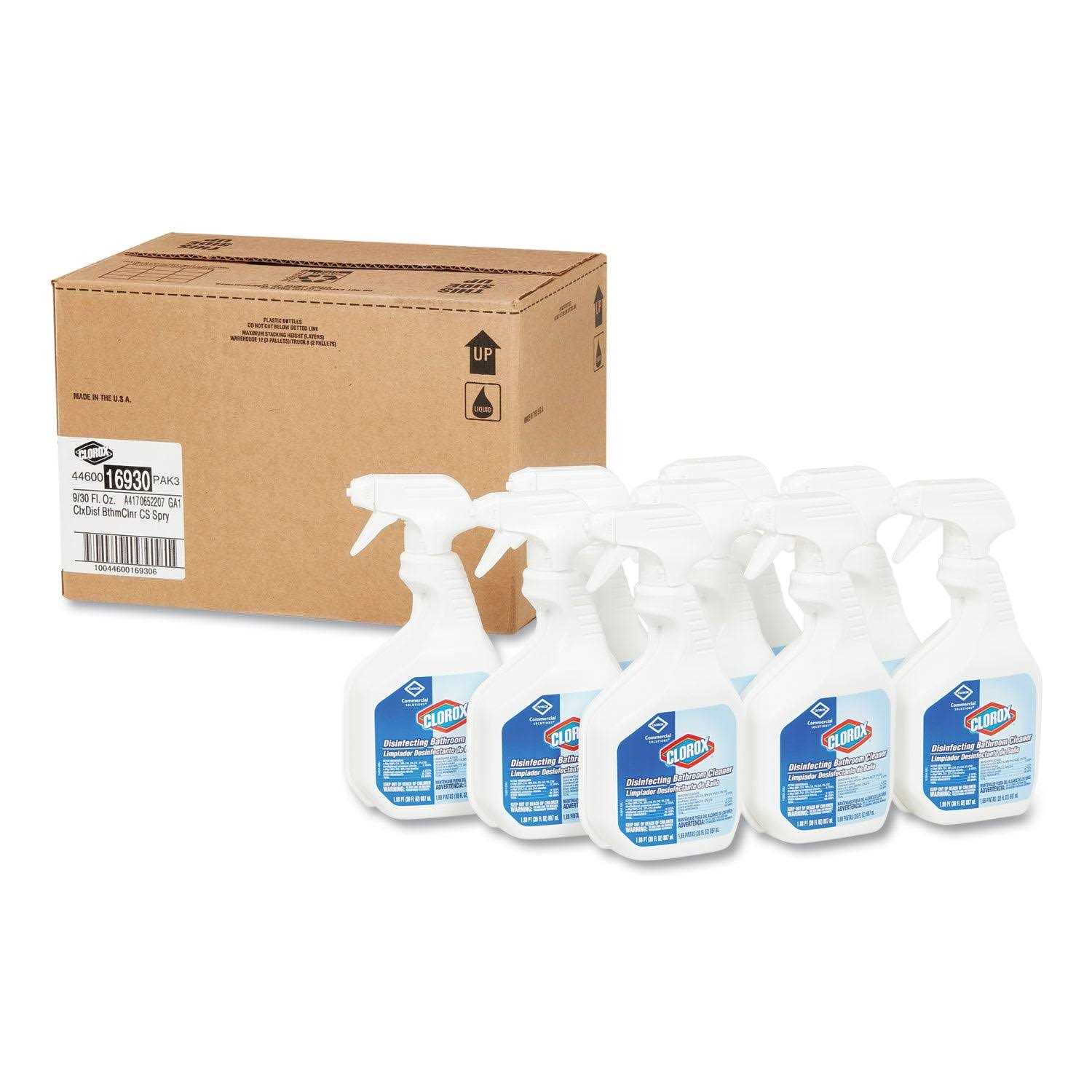 Clorox disinfecting bathroom cleaner lifts soap scum off the surface and breaks it down, alkaline formula and EPA registered disinfectant.Bathroom cleaner comes in an easy-to-use trigger spray bottle.Cleaner quantity: 30 fl oz.. Disinfecting bathroom cleaner comes in an easy-to-use trigger spray bottle.