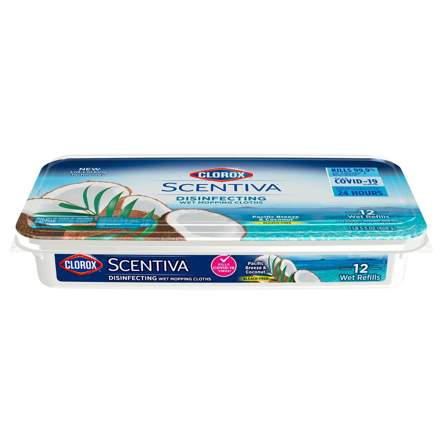 Clorox Scentiva Wet Mopping Cloths, Disinfecting, Pacific Breeze & Coconut – 12 wet refills [1 lb 5.5 oz (608 g)]