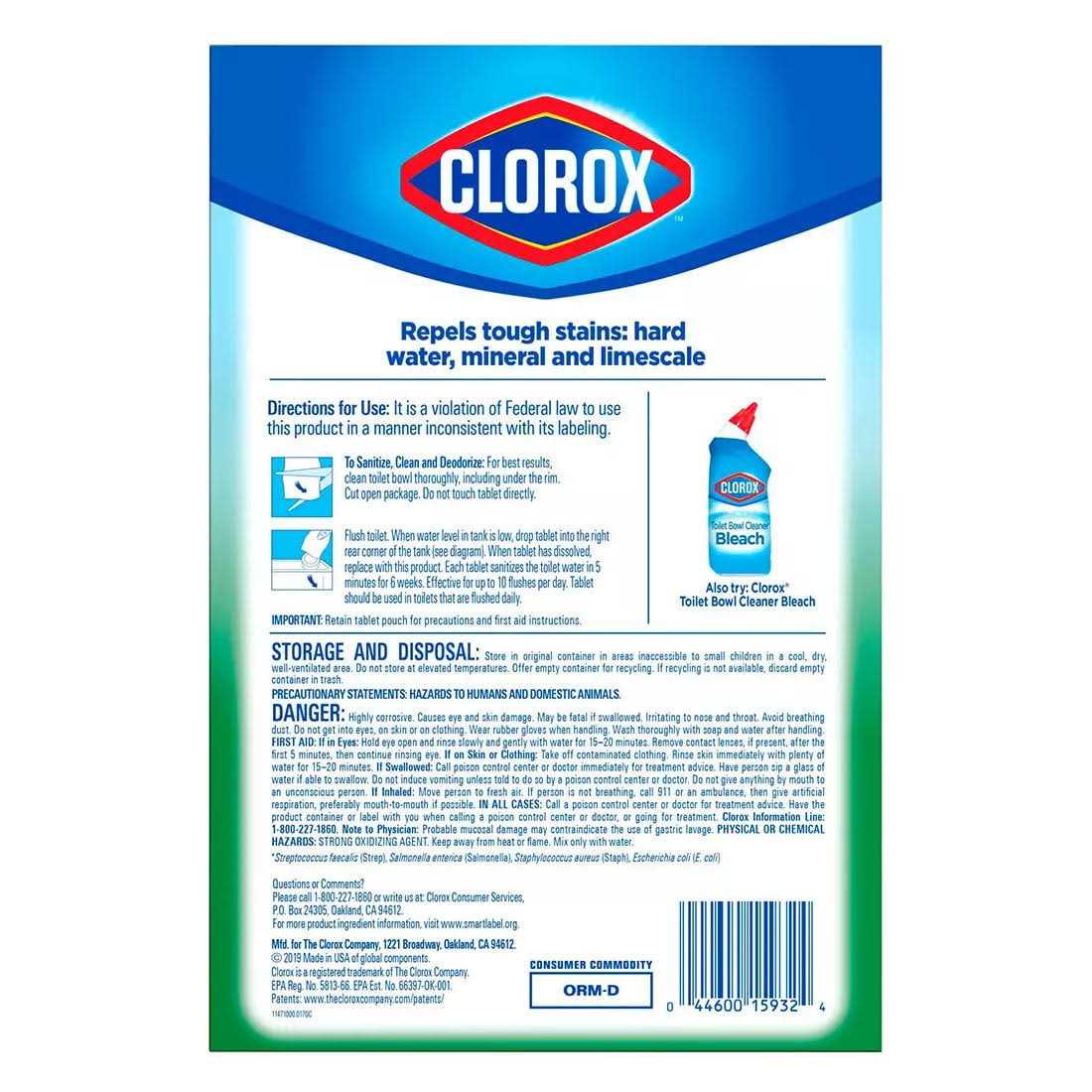 This toilet bowl cleaning tablet, effectively cleans and prevents stains with each flush, eliminating the need to scrub every time. Each tablet delivers a long-lasting bleach clean and is good for up to 3 months. Simply drop a tablet into your toilet tank to continuously sanitize, deodorize and clean your toilet every time you flush. The dissolvable cleaning tablets help prevent tough stains and removes hard water, mineral deposits and lime scale stains. Keep your toilet bowl sparkling fresh and ultra clean with no mess and no fuss with the help of Clorox Ultra Clean Toilet Tablets.