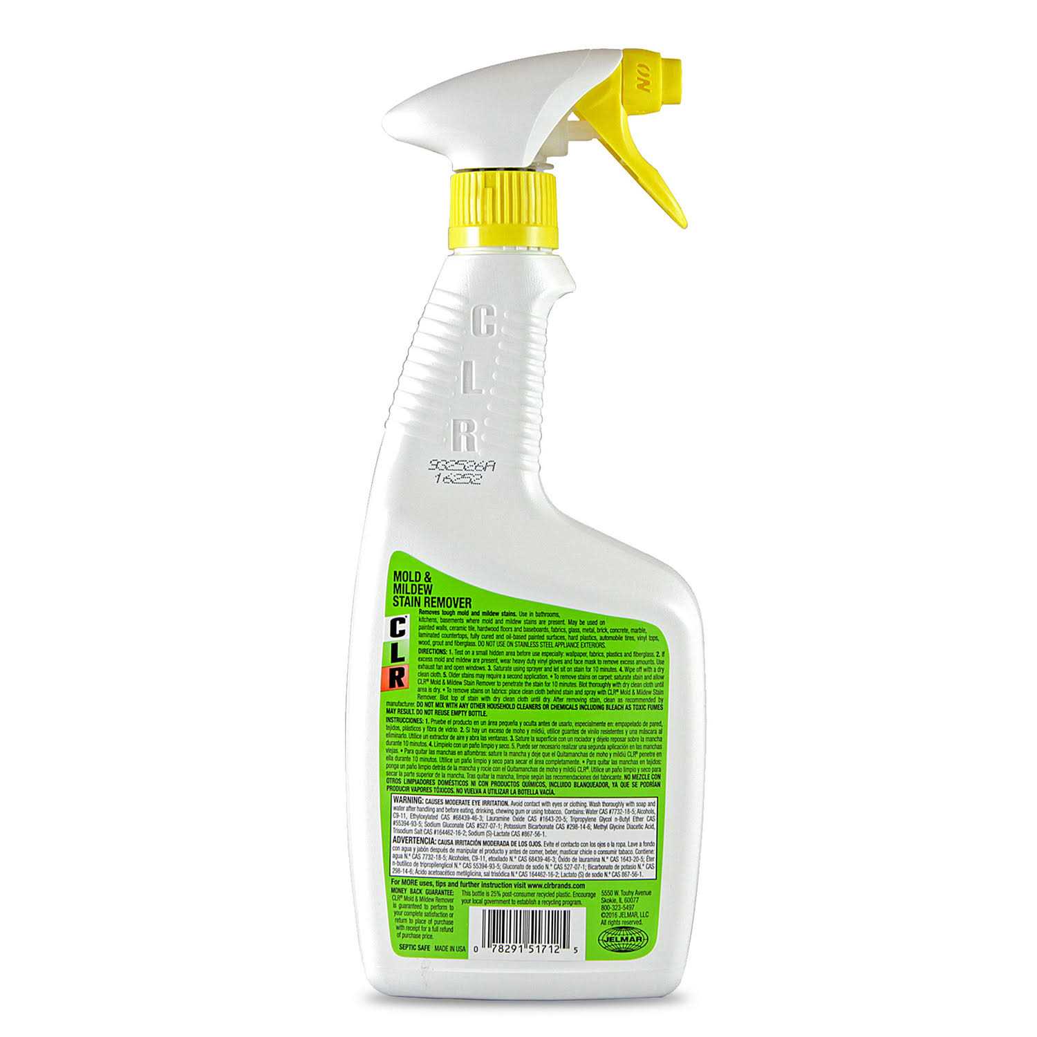 With CLR Mold & Mildew Stain Remover, you can quickly remove tough surface mold and mildew stains on a wide variety of surfaces throughout the home, including painted walls, ceramic tile, hardwood floors, baseboards, fabrics, glass, metal, brick, concrete, marble, laminated countertops, fully cured and oil-based painted surfaces, hard plastics, automobile tires, wood, grout and fiberglass. This bleach-free remover has a foam sprayer that allows for a more direct application, preventing splash back and spores from spreading in the air. CLR Mold & Mildew Stain Remover is part of the EPA’s Safer Choice Program (formerly Design for the Environment (DfE)) recognizing the product as a safer alternative to chemicals. Always spot test in an inconspicuous area first. For best results in front loading washing machine, product should be applied once per week, soon after using machine. Surfaces need to be allowed to dry after application. If mold is left on surface, like rubber gaskets or grout, for even a week, mold can embed into surface, in which case product will no longer work effectively. CLR Mold & Mildew Stain Remover should not be used on metals or finishes, especially chrome or stainless steel. Look for CLR Mold & Mildew Stain Remover in these sizes: CLR Mold & Mildew Stain Remover is sold in a 32 oz. bottle.