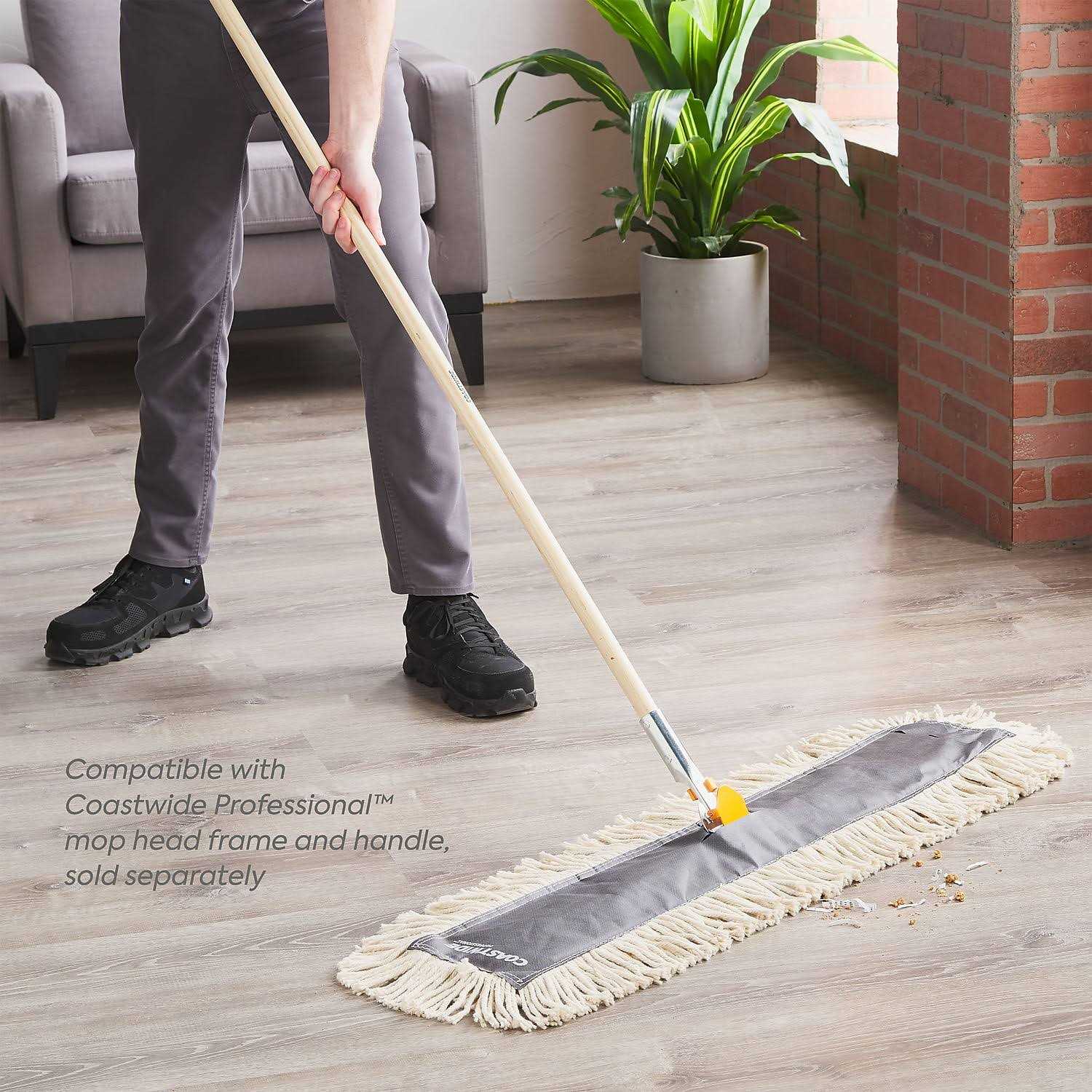 Handle big messes efficiently with this Coastwide Professional economy cut-end dust mop head.Give your janitorial staff a versatile cleaning tool with this cut-end dust mop head. The design is perfect for tough tasks, and the cotton yarn traps and retains fine particles for a thorough clean. An expansive 36-inch width covers large areas in a single pass. This Coastwide Professional economy cut-end dust mop head is compatible with range of Coastwide Professional handles and frames for efficient maintenance setup. Keep your floors free of dust and debris with this cut-end cotton dust mop head. Disposable for intense cleaning. Comes in white and made of cotton. 36 inch width provides plenty of cleaning capacity. Dust mop frame and handle sold separately – search “Coastwide Dust Mop Frame” or “Coastwide Dust Mop Handle” for compatible Coastwide Professional Dust Mop Handles and Frames.
