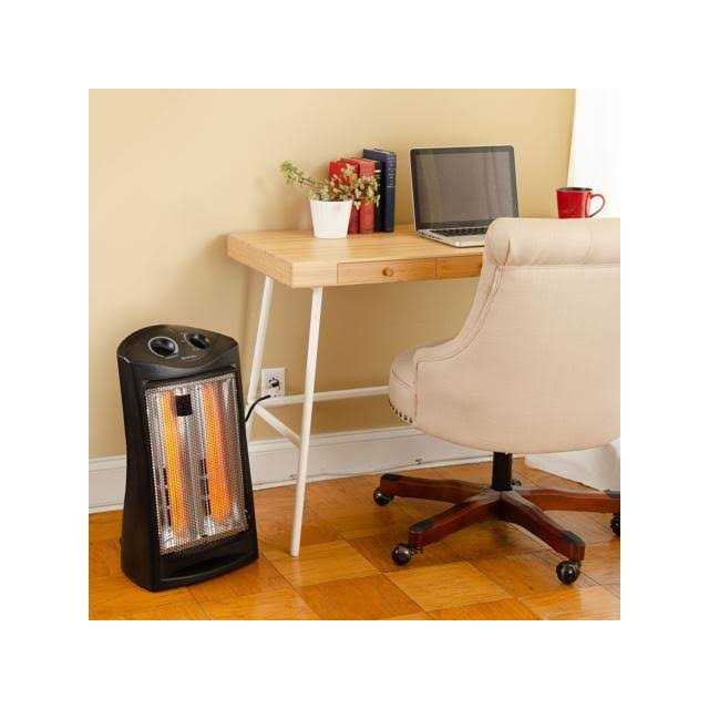 Comfort Zone Create a warm and comfortable space for work or relaxation with this Comfort Zone Radiant Quartz Tower Heater. By lowering your home thermostat slightly and using this heater to warm just the room you are occupying, it can lead to significant savings on your heating bills. The heater employs dual quartz tubes, which heat up quickly and give off a warm glow when in use. The quartz heater offers two different heat settings. It is fan-assisted to help disperse the heat more evenly throughout your space. You can switch between the high and low heat settings by simply turning a knob at the top of the unit. A second knob allows you to easily adjust the thermostat to just the right temperature for your space. A tip-over switch automatically turns the heater off if it is knocked over to help prevent fires, while a built-in sensor helps to prevent the unit from overheating. A moulded handle makes it easy to carry, and the stay-cool handle and housing allow you to safely transport it from room to room. The Comfort Zone Quartz Heater has a space-saving design that fits into small rooms with ease. It comes in a sleek black finish that effortlessly complements a wide variety of different decor styles.
