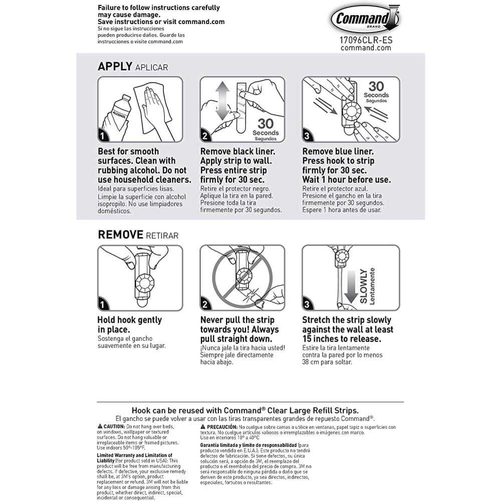 - Includes – 2 Clear hooks, 3 medium strips; 1 hook holds 2 lbs